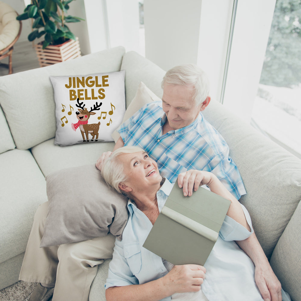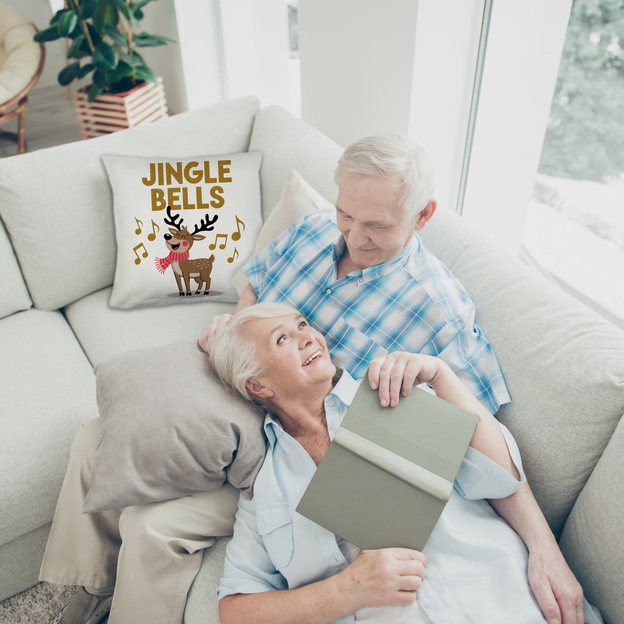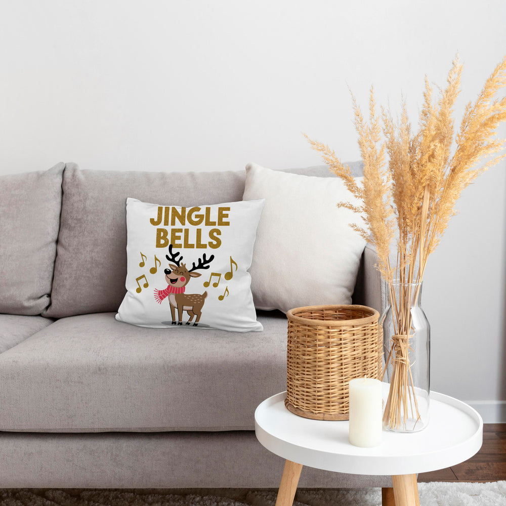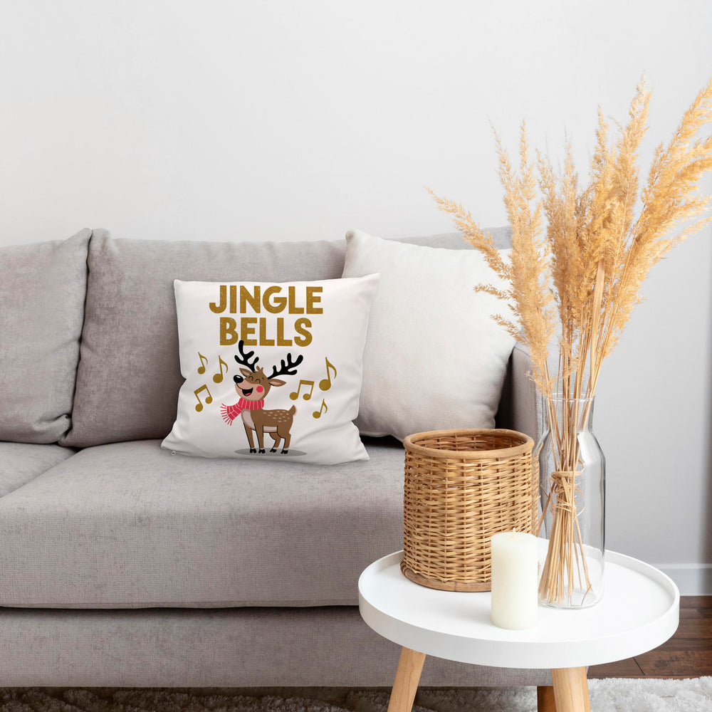 Rentier mit rotem Schal - JINGLE BELLS Kissen