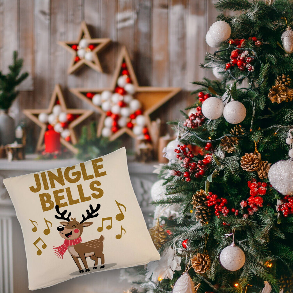 Rentier mit rotem Schal - JINGLE BELLS Kissen - Standard ist auf Lager und wird versandt, sobald es wieder verfügbar ist