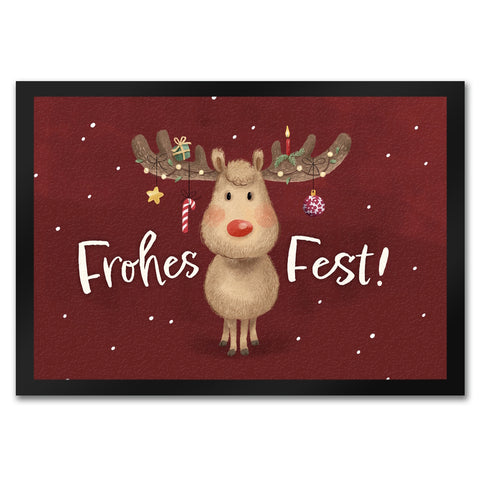 Frohes Fest Rentier mit Weihnachtsschmuck Fußmatte in 35x50 cm