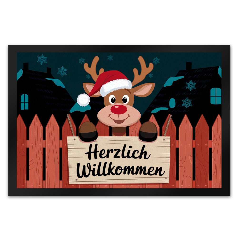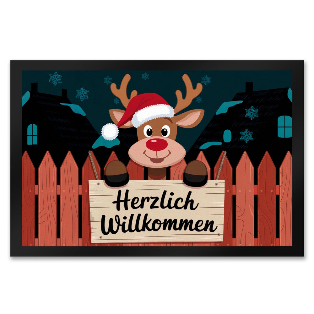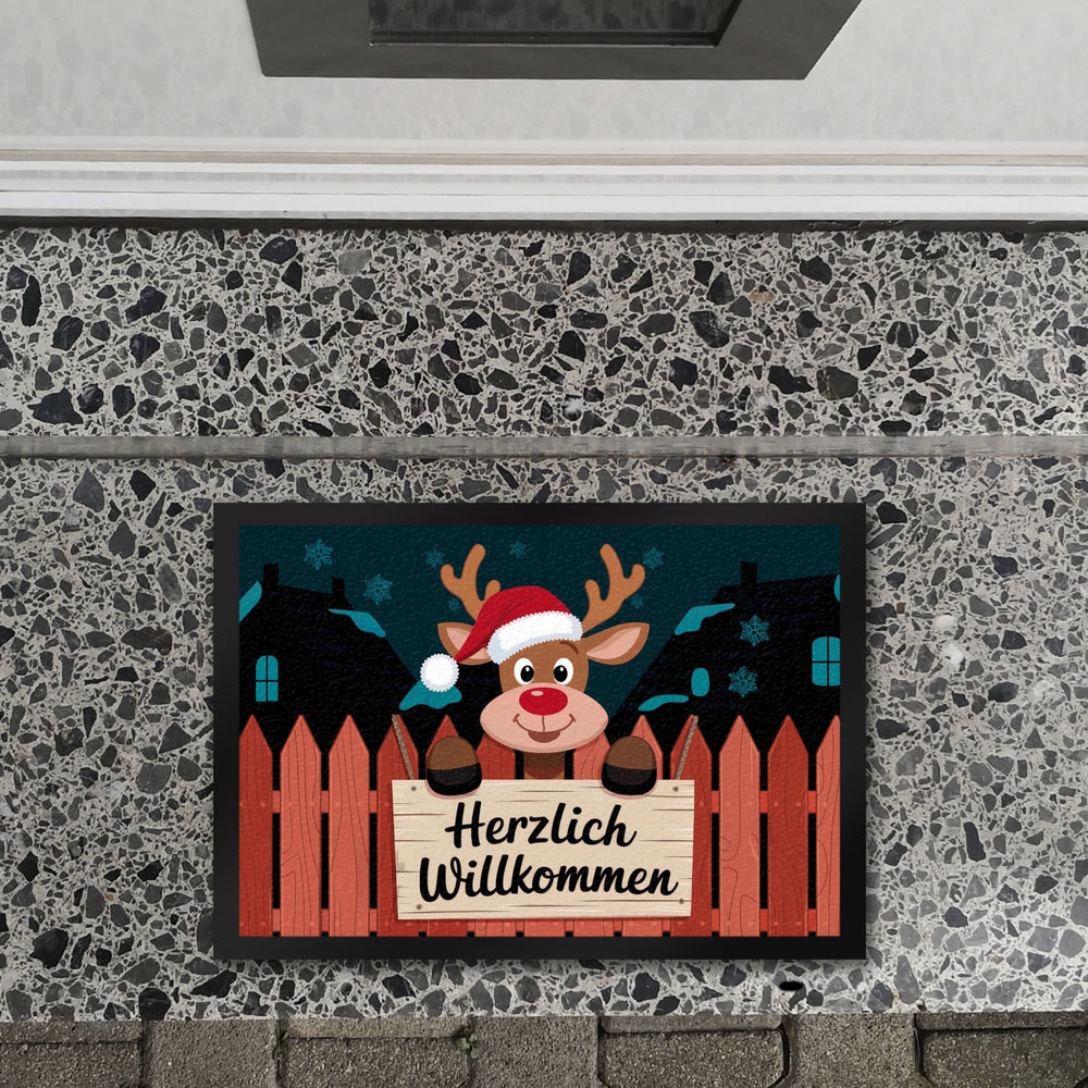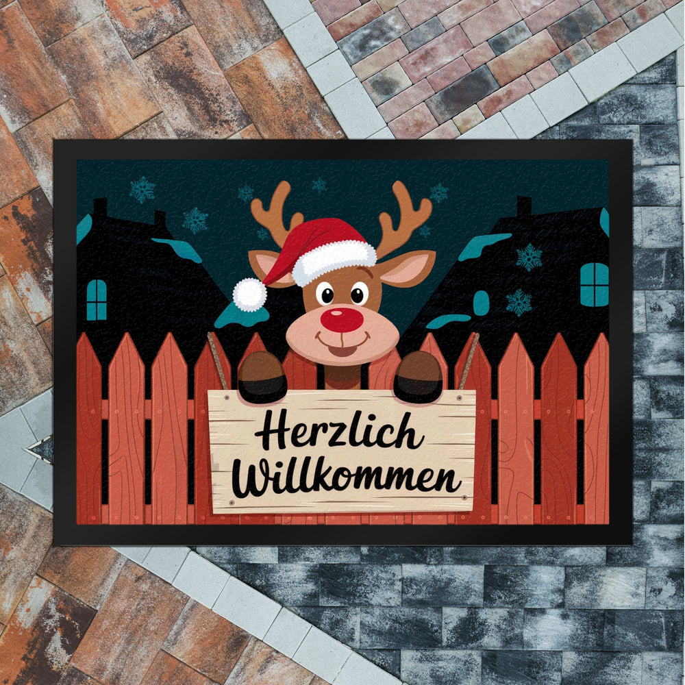 Rentier mit roter Nase - Willkommen Fußmatte in 35x50 cm
