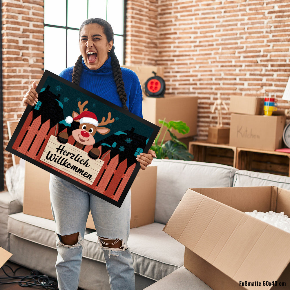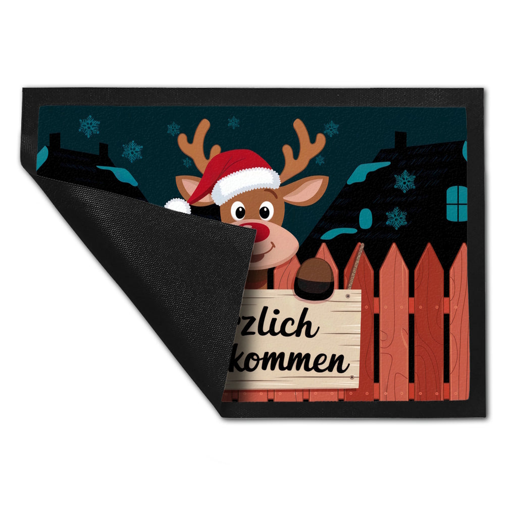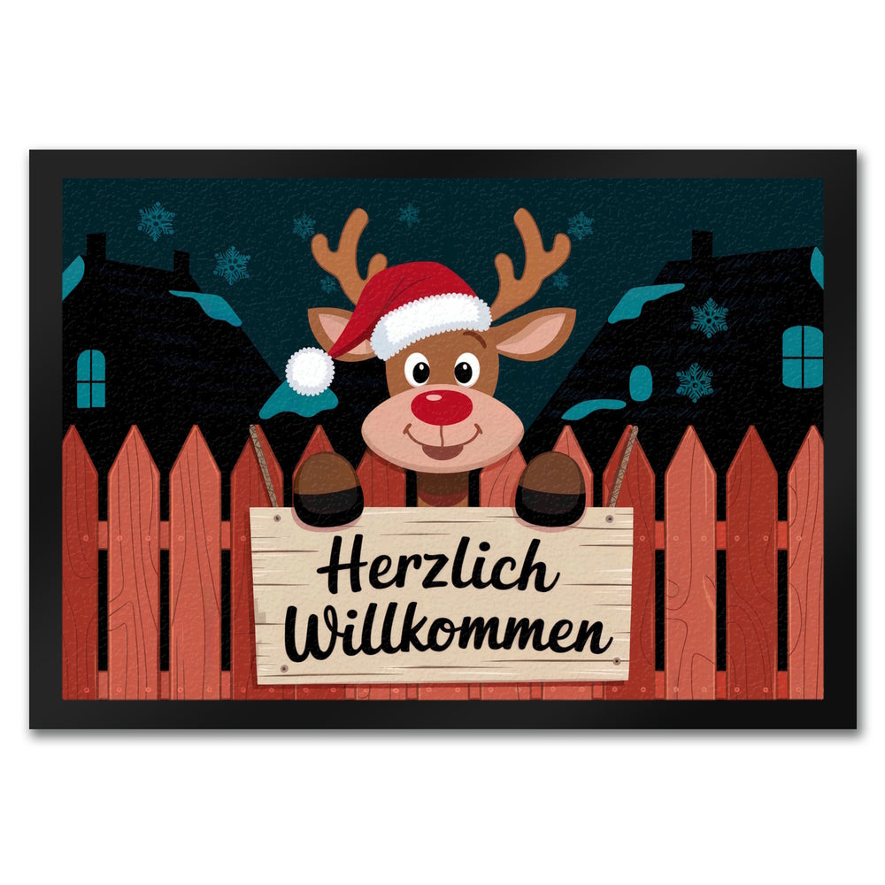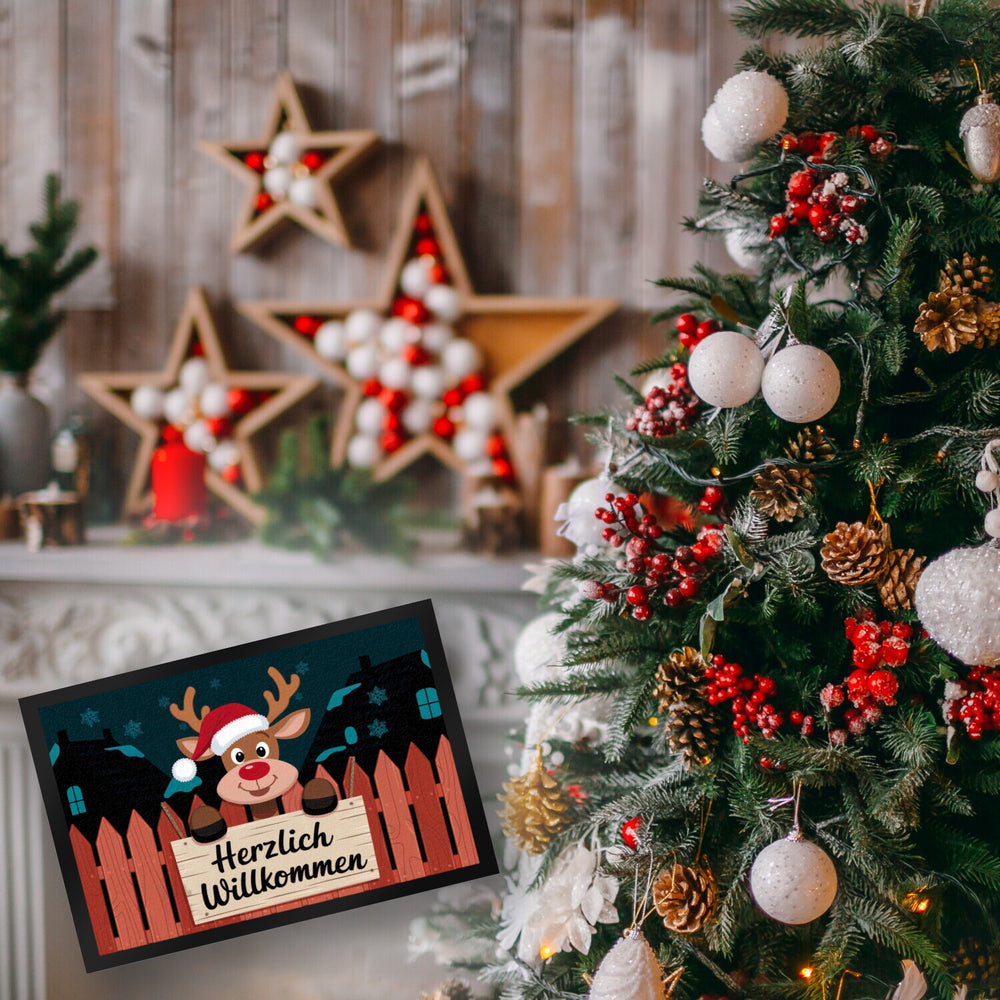 Rentier mit roter Nase - Willkommen Fußmatte in 35x50 cm