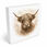 Rustikale Momente Hochlandrind Portrait Holzbild in 10x10 cm zum Stellen oder Aufhängen
