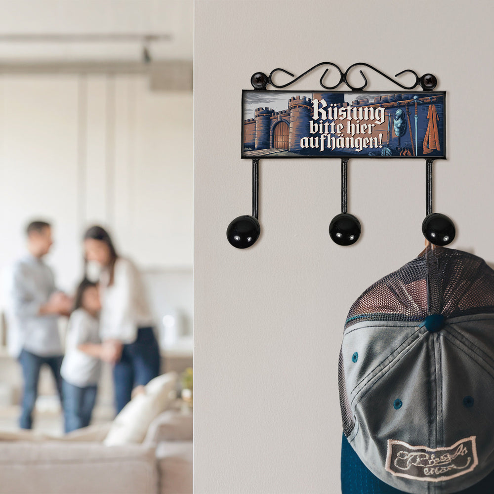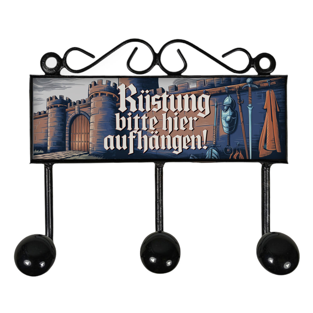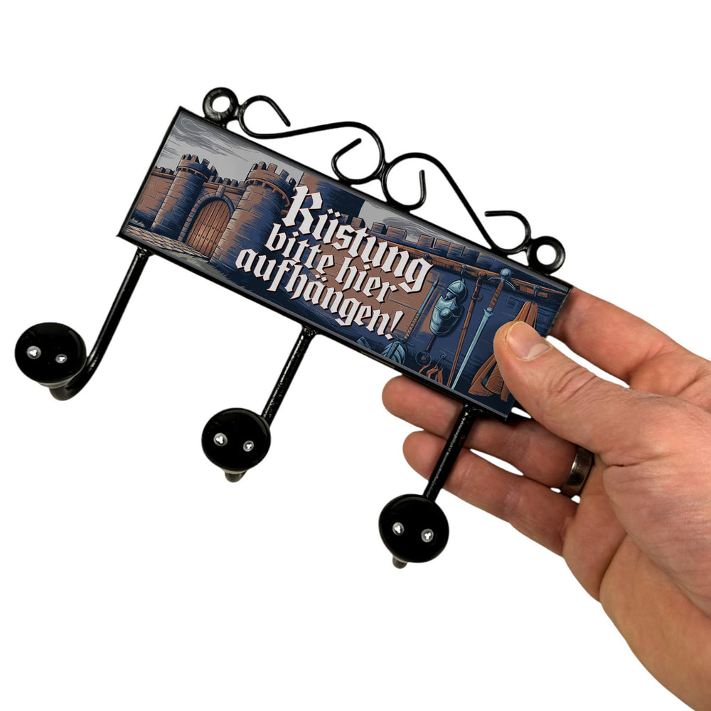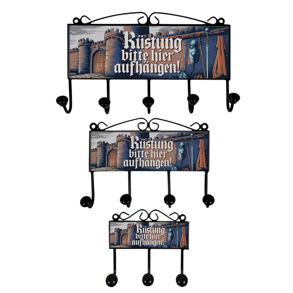 Rüstung Bitte Hier Aufhängen Kleiderhaken Leiste mit 3 Haken mit mittelalterlicher Burg
