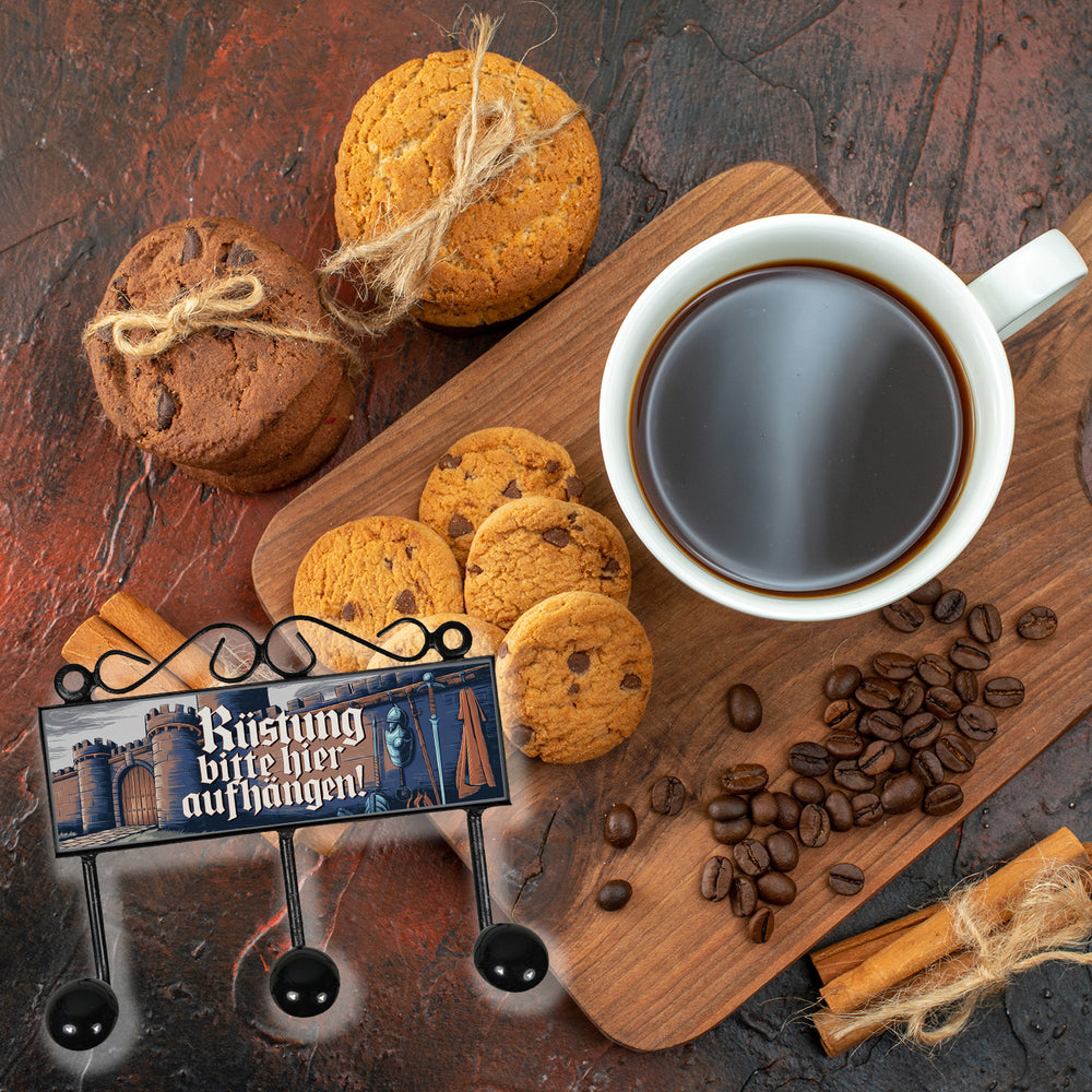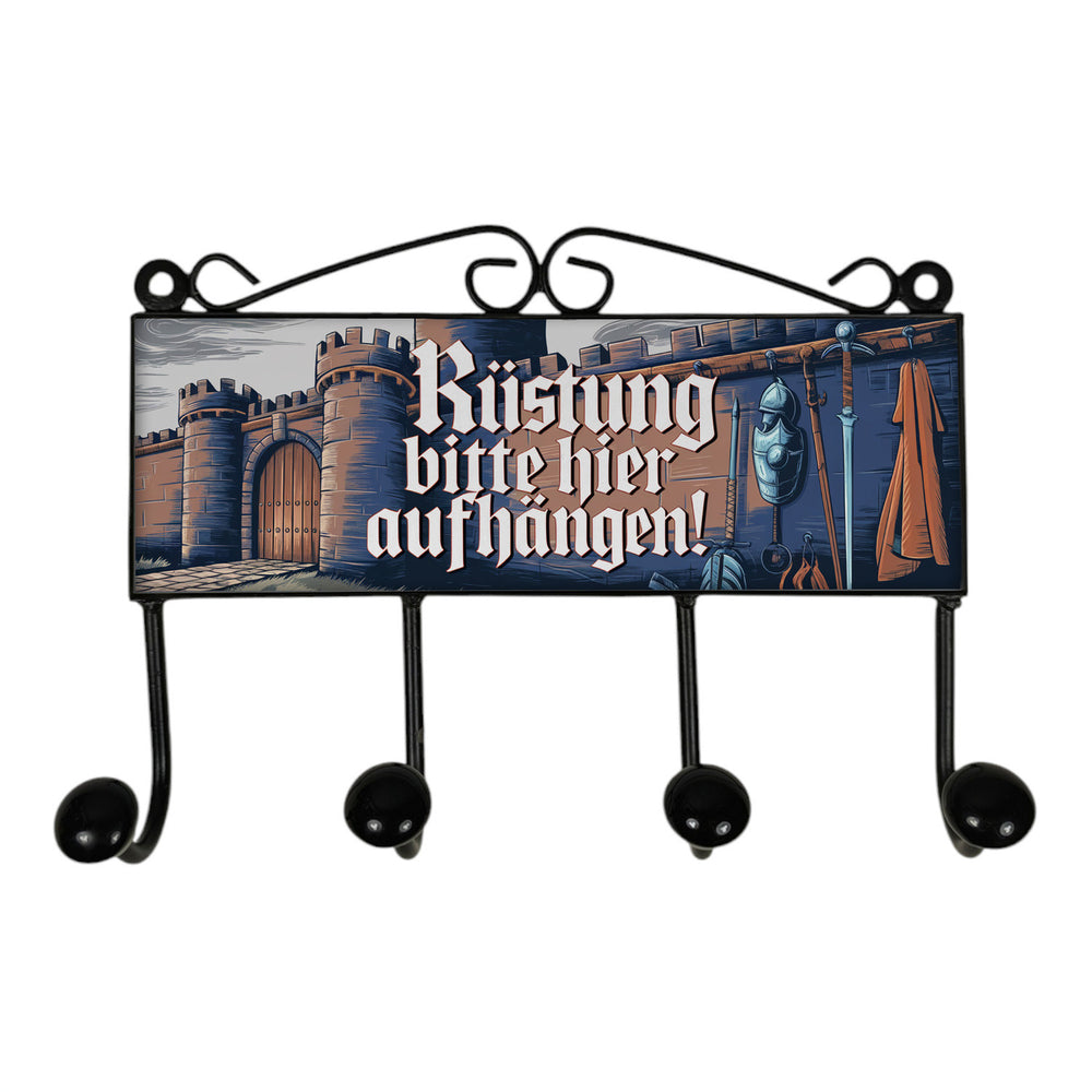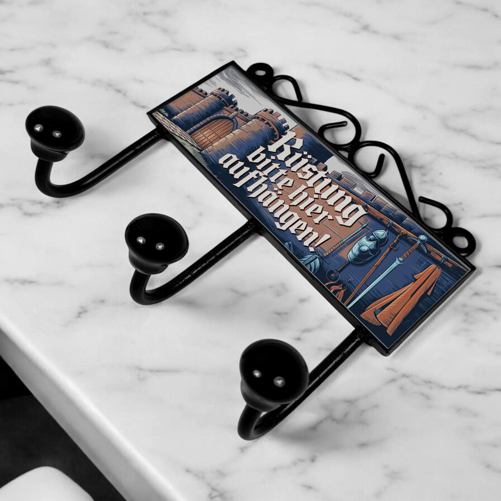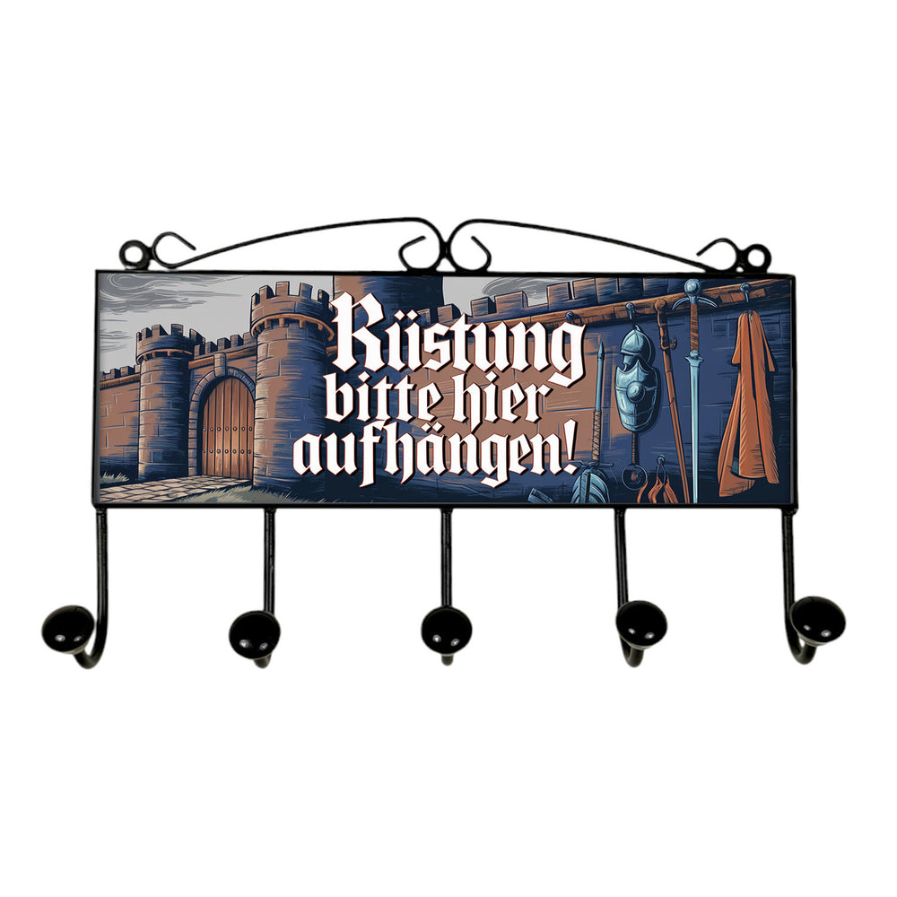 Rüstung Bitte Hier Aufhängen Kleiderhaken Leiste mit 3 Haken mit mittelalterlicher Burg