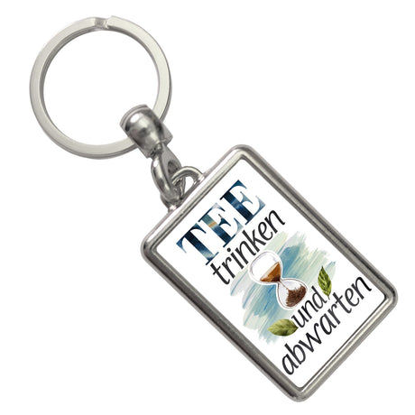 Sanduhr mit Teeblättern Schlüsselanhänger Tee trinken und abwarten