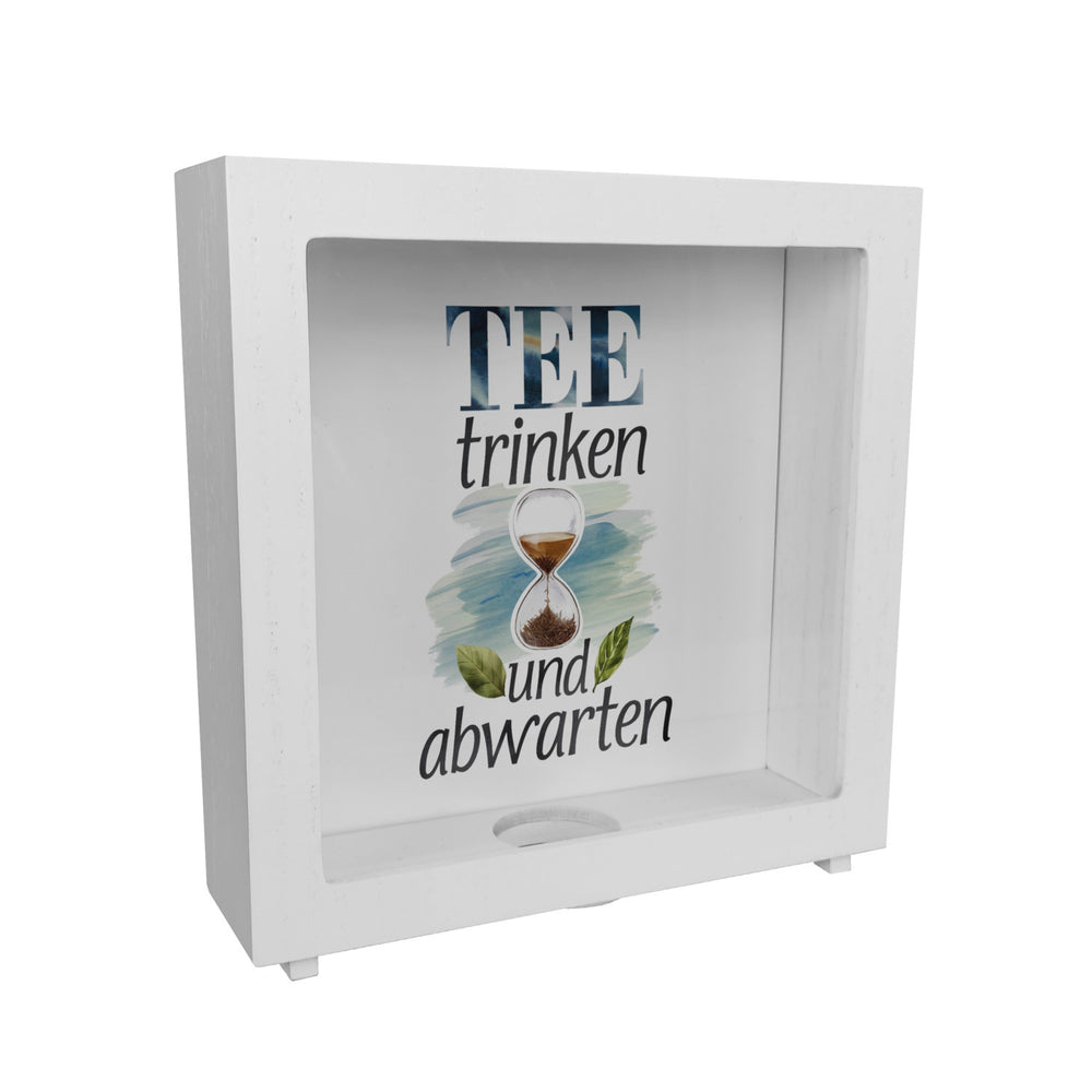 Sanduhr mit Teeblättern Spardose Tee trinken und abwarten