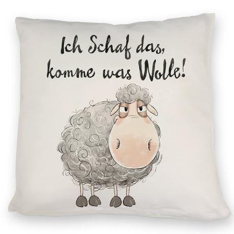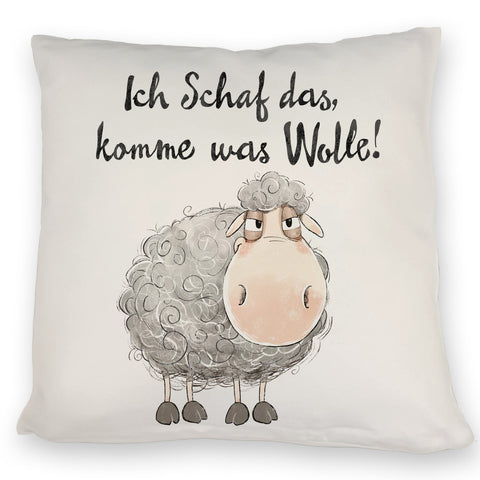 Schaf Kissen mit Spruch Ich Schaf das komme was Wolle