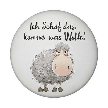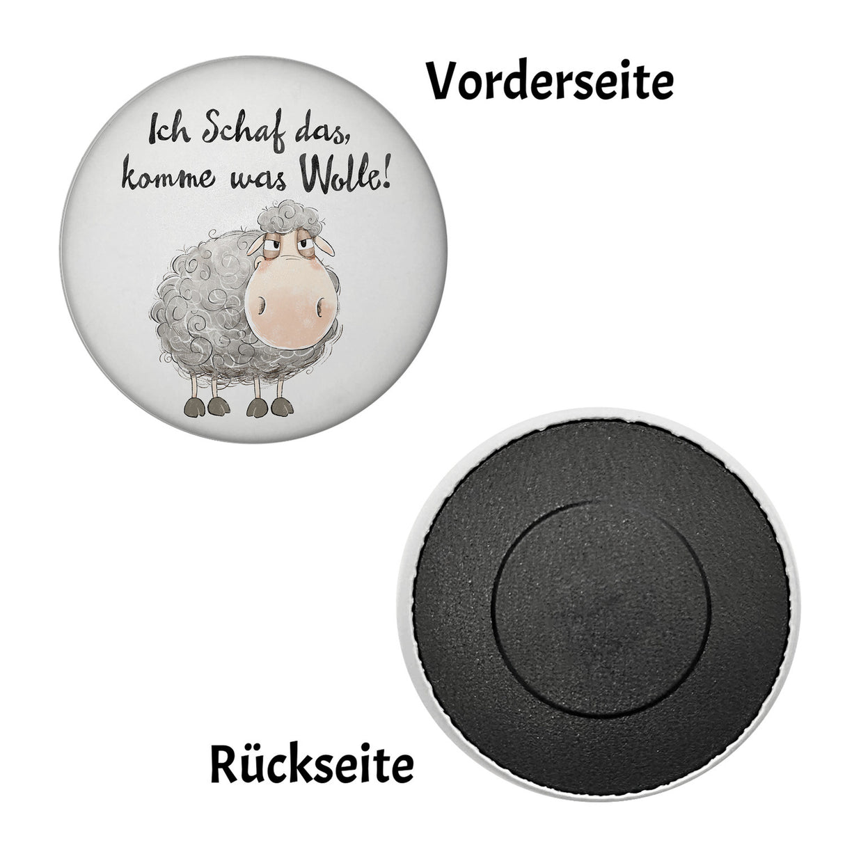 - 1x Schaf Magnet rund rund mit Spruch Ich Schaf das komme was Wolle in der gewählten Ausführung
