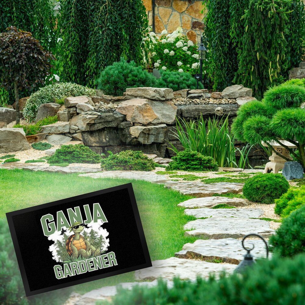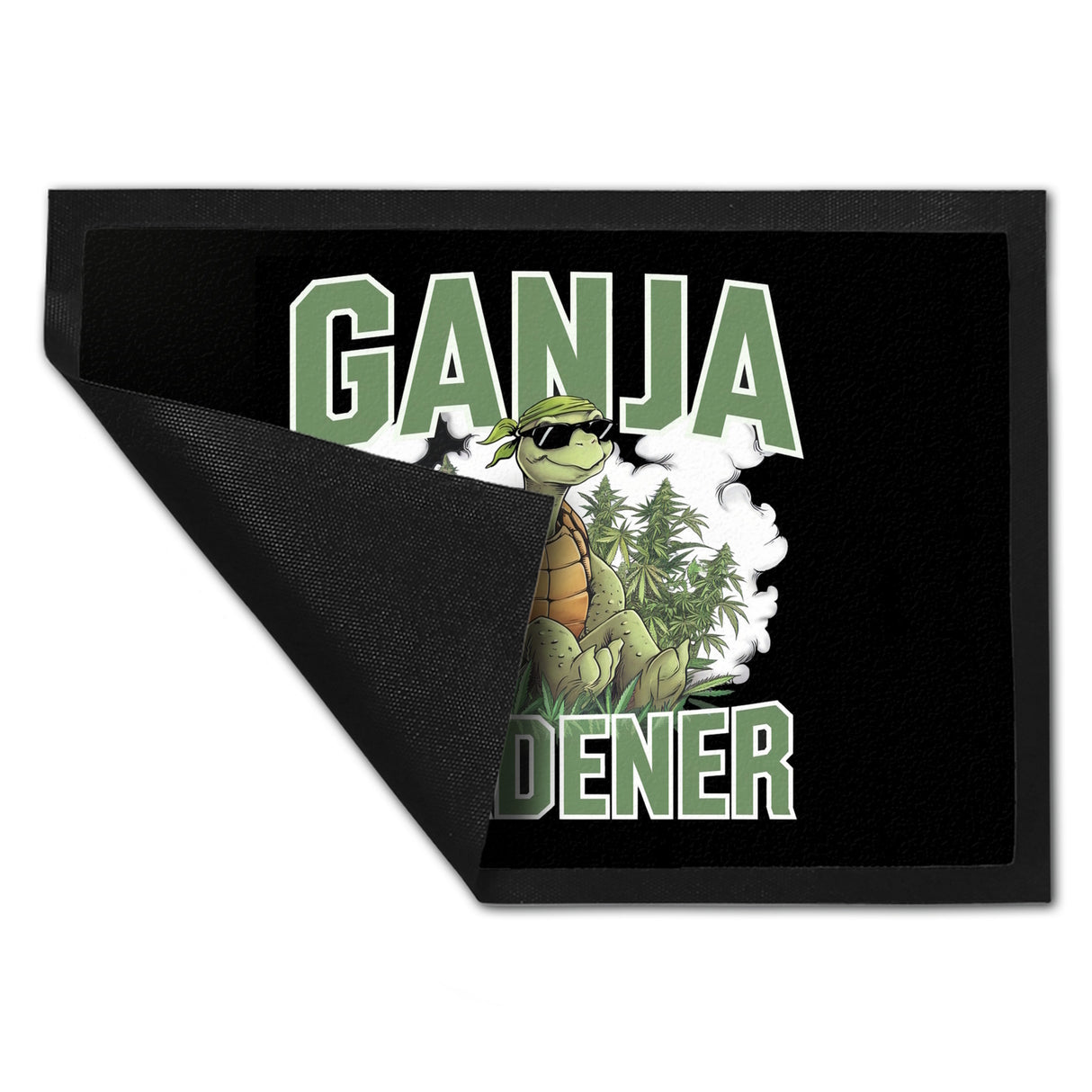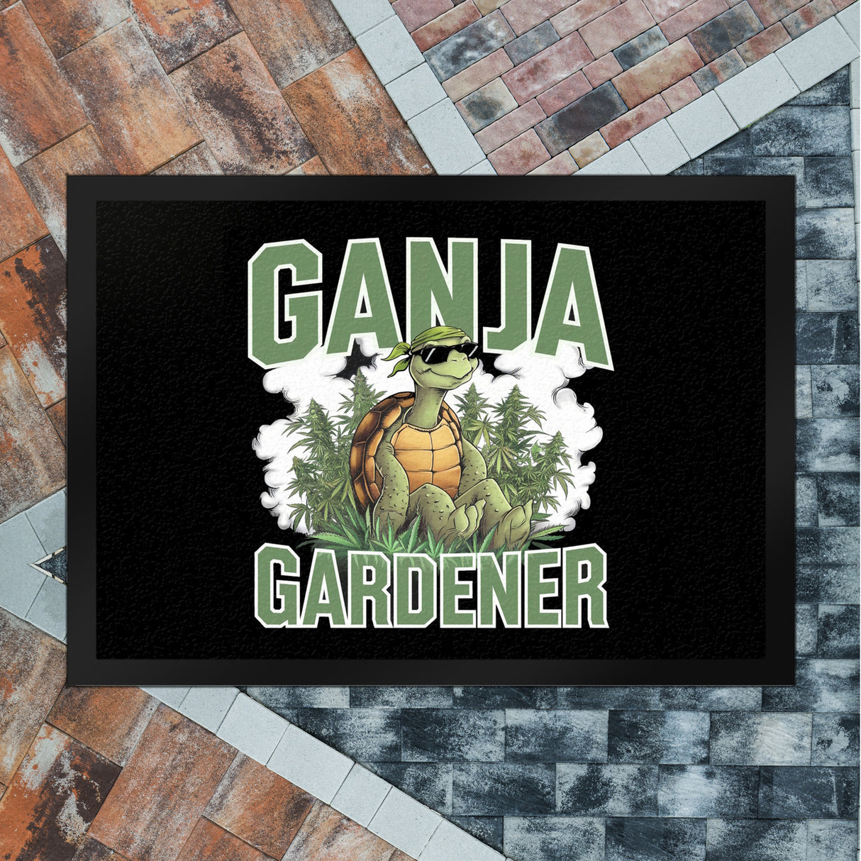 - Diese lustige Fußmatte zeigt eine bekiffte Schildkröte im Cannabisfeld, komplett mit Sonnenbrille und grünem Bandana. Umgeben von einer Rauchwolke und auf schwarzem Hintergrund hebt sich der große, grüne Schriftzug "Ganja Gardener" auffällig ab. Perfekt für alle, die Humor lieben und einen Hauch von Individualität vor ihrer Tür schätzen!