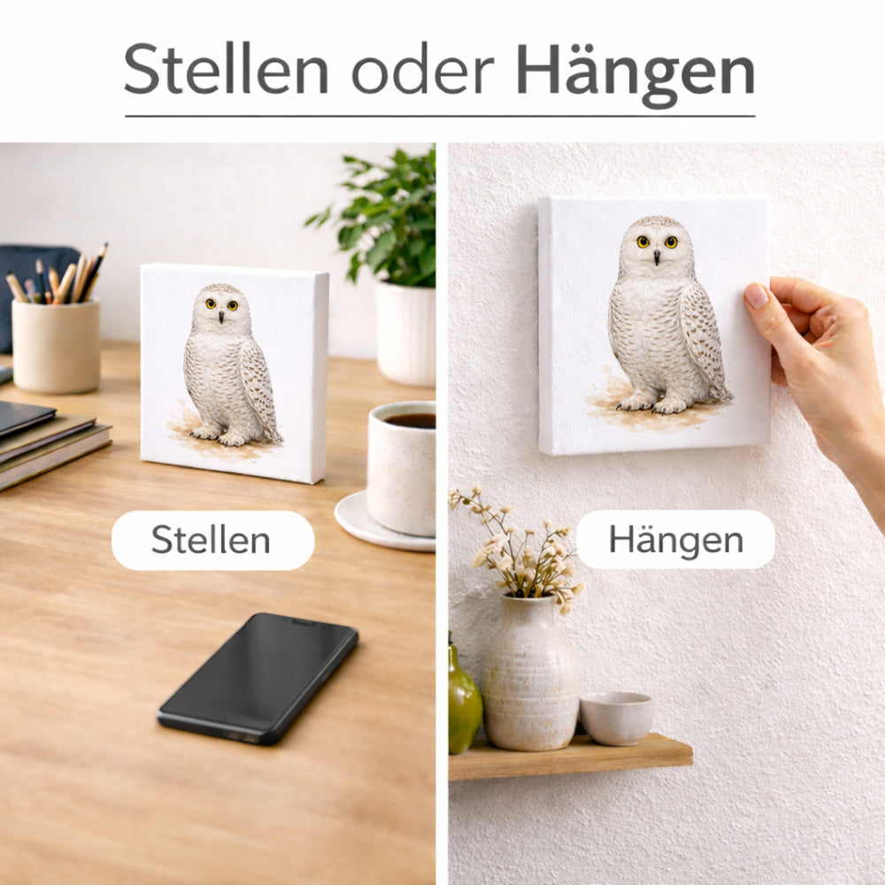- 1x Schneeeulenzauber Schnee-Eule Holzbild in 10x10 cm zum Stellen oder Aufhängen in der gewählten Größe