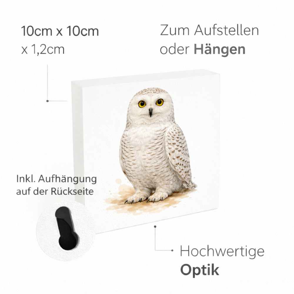 Schneeeulenzauber Schnee-Eule Holzbild in 10x10 cm zum Stellen oder Aufhängen