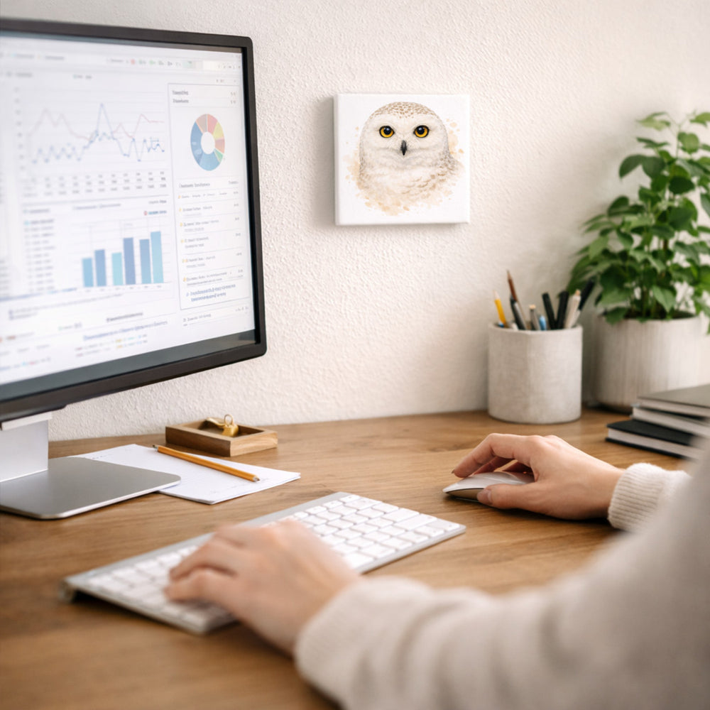 - Entdecken Sie das zauberhafte Schneeeulen Portrait auf einem hochwertigen Holzbild! Die mystischen gelben Augen der Eule ziehen jeden Betrachter in ihren Bann. Der helle Hintergrund und die aquarellartige Darstellung verleihen diesem Kunstwerk eine besondere Tiefe. Ideal für Ihr Zuhause oder Büro als stilvolle Dekoration.