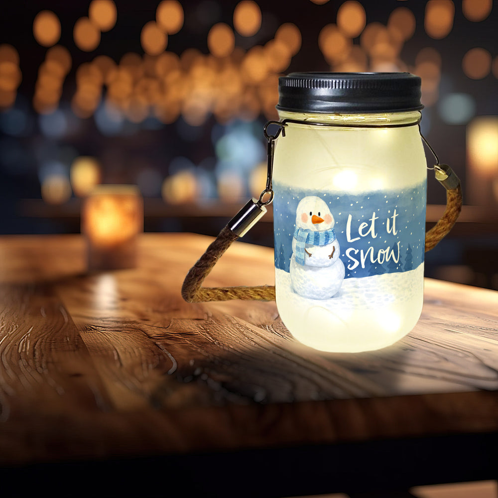- Unser Solarlicht ist ein süßer, pummeliger Schneemann mit Schal, der in einem Einmachglas lebt. Dieses niedliche Dekolicht bringt Winterzauber in jede Terrasse und ist ideal für die Weihnachtszeit. Mit seinem nostalgischen Strickhenkel kann es überall aufgehängt werden. Perfekt, um die kalte Jahreszeit zu begrüßen!