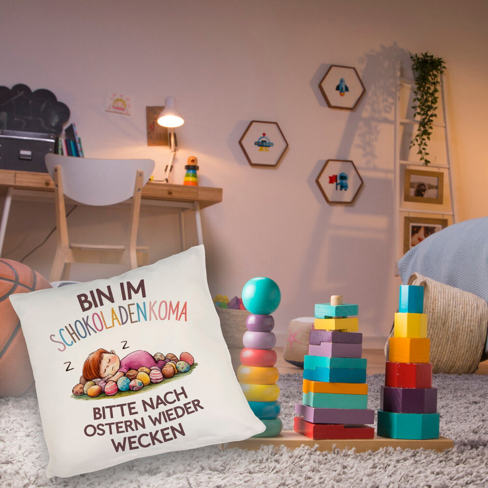 Schokoladenkoma Kissen Kind auf Schokoladeneiern