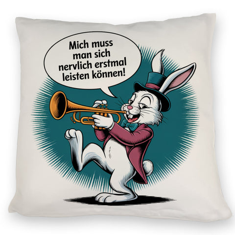 Nerviger Hase Kissen mit Trompete - bin nervig