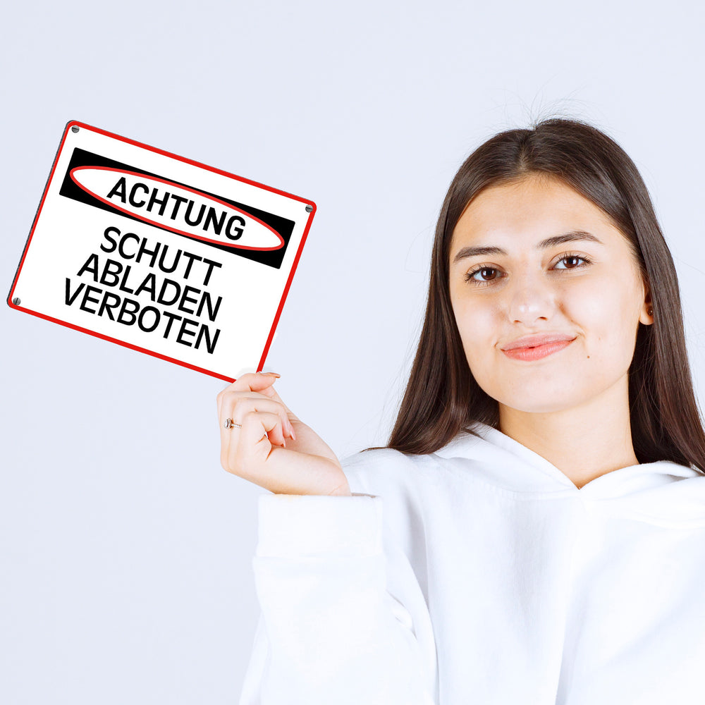 - Lieferumfang: 1x Schutt abladen verboten Warn- und Hinweisschild im modernen Design