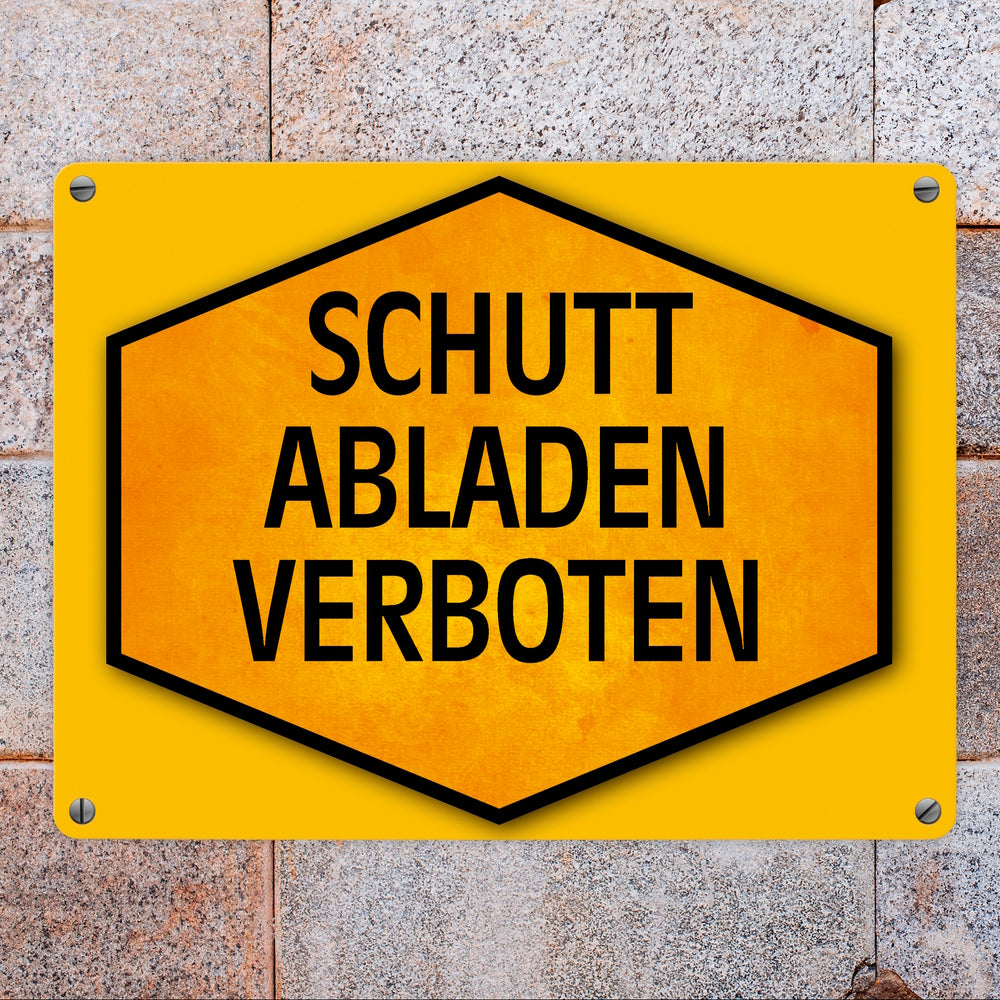 - Lieferumfang: 1x Schutt abladen verboten Warn- und Hinweisschild in Gelb und Schwarz
