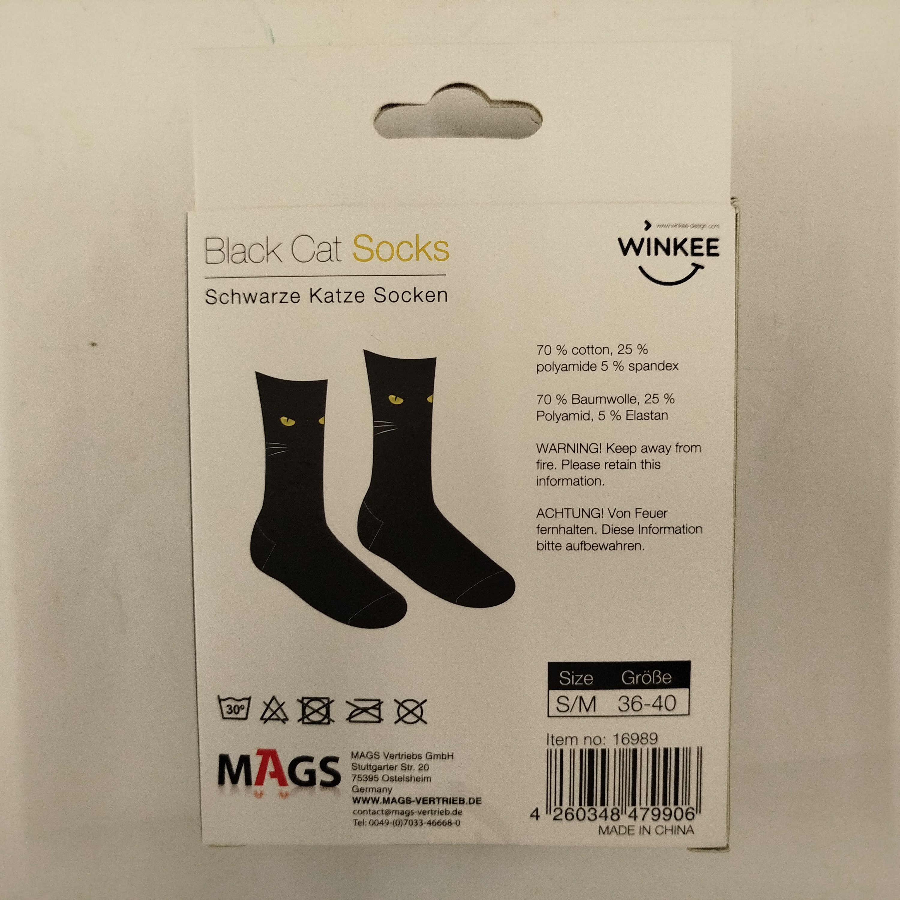 • Diese schwarzen Socken sind keine langweiligen Socken. Mit offenen Augen schauen dich hier zwei Katzenaugen mit strengem Blick an.