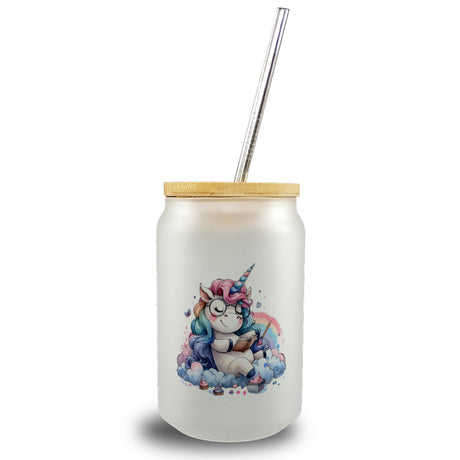 Träumendes Einhorn Trinkglas mit Bambusdeckel