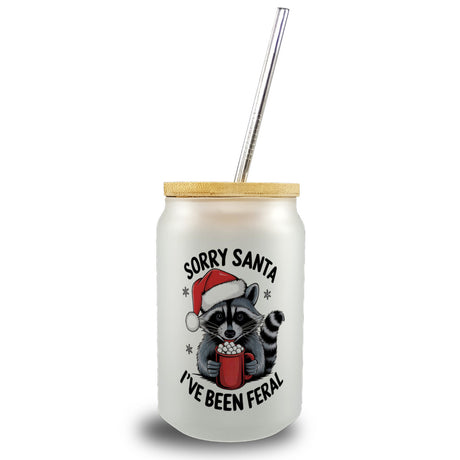 Waschbär mit Weihnachtsmütze Trinkglas mit Bambusdeckel - Sorry Santa