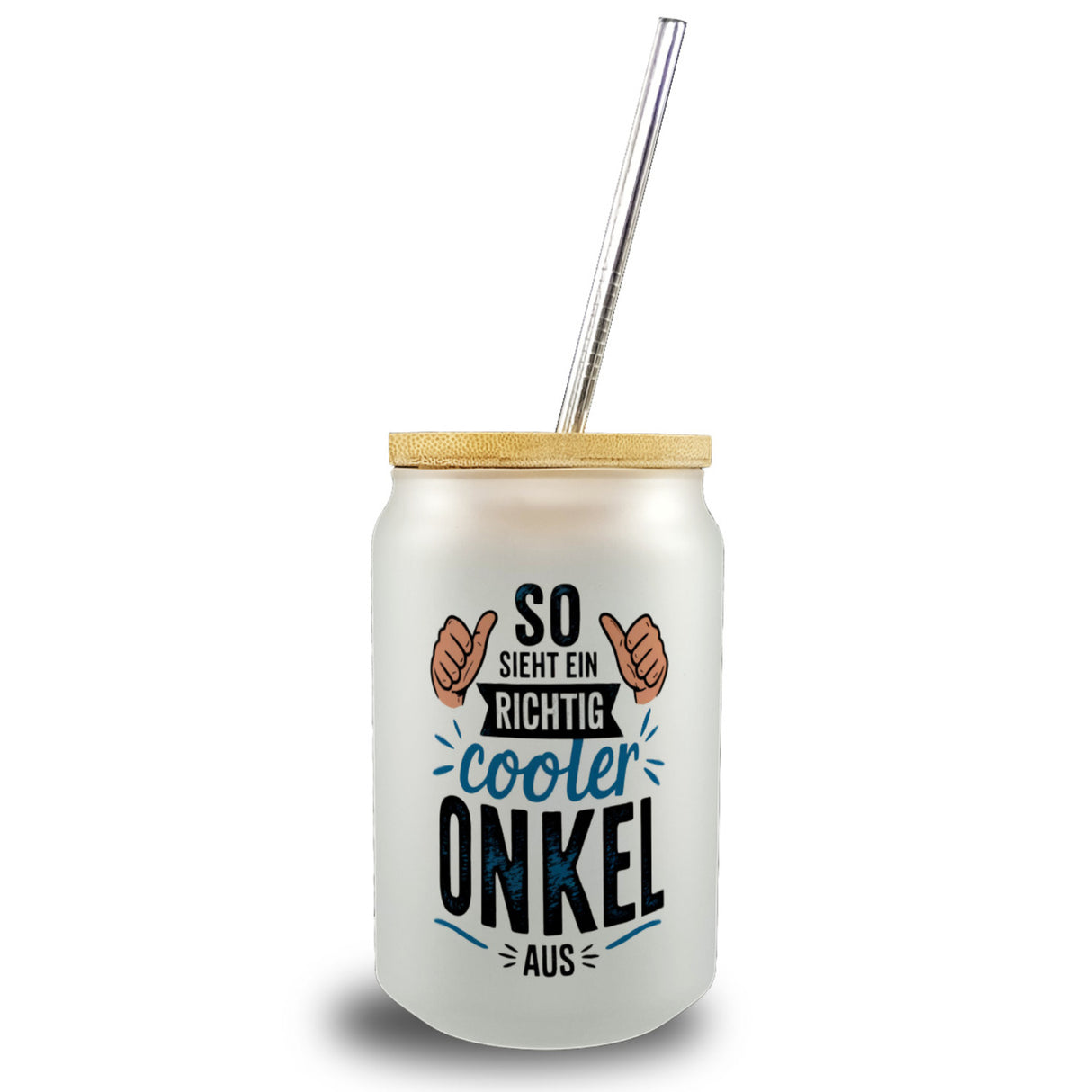 - 1x SO SIEHT EIN RICHTIG COOLER ONKEL AUS Trinkglas mit Bambusdeckel mit Bambusdeckel oder Henkel