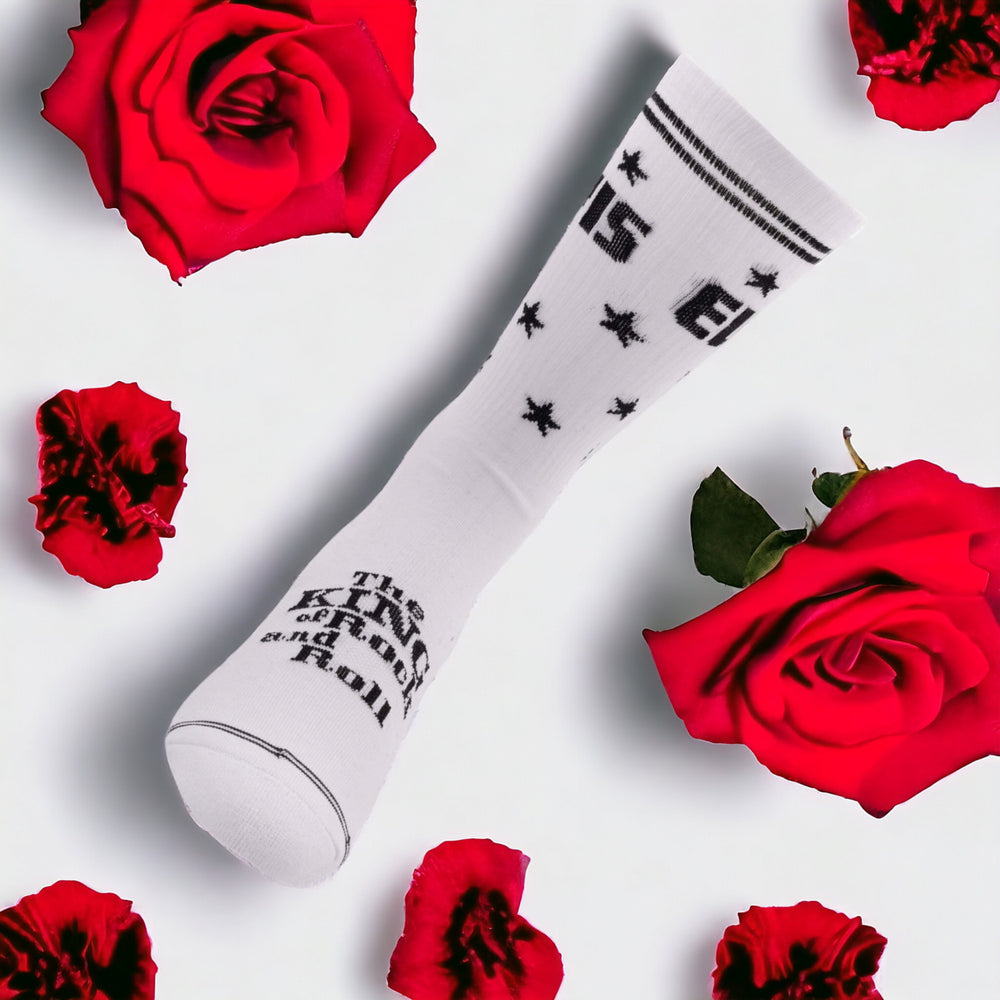 - 1x Socken Elvis Presley Fanartikel Elvis the King Strümpfe in weiß in 40-46 im Paar.