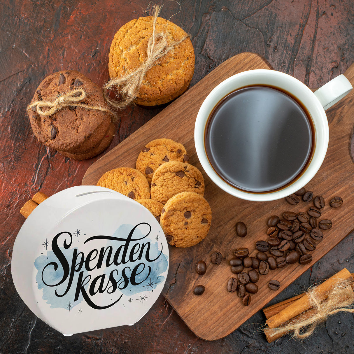 Kaffeetasse mit Kaffeebohnen - Kaffeekasse Spardose