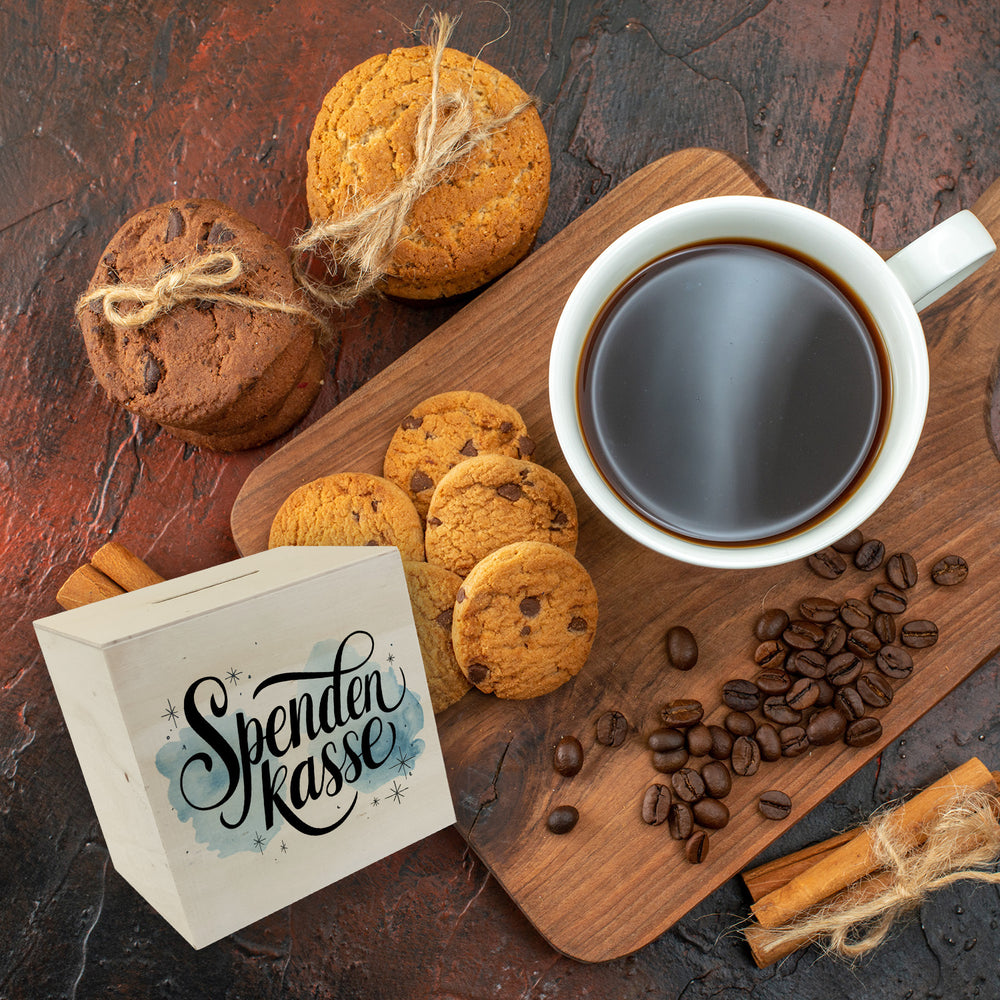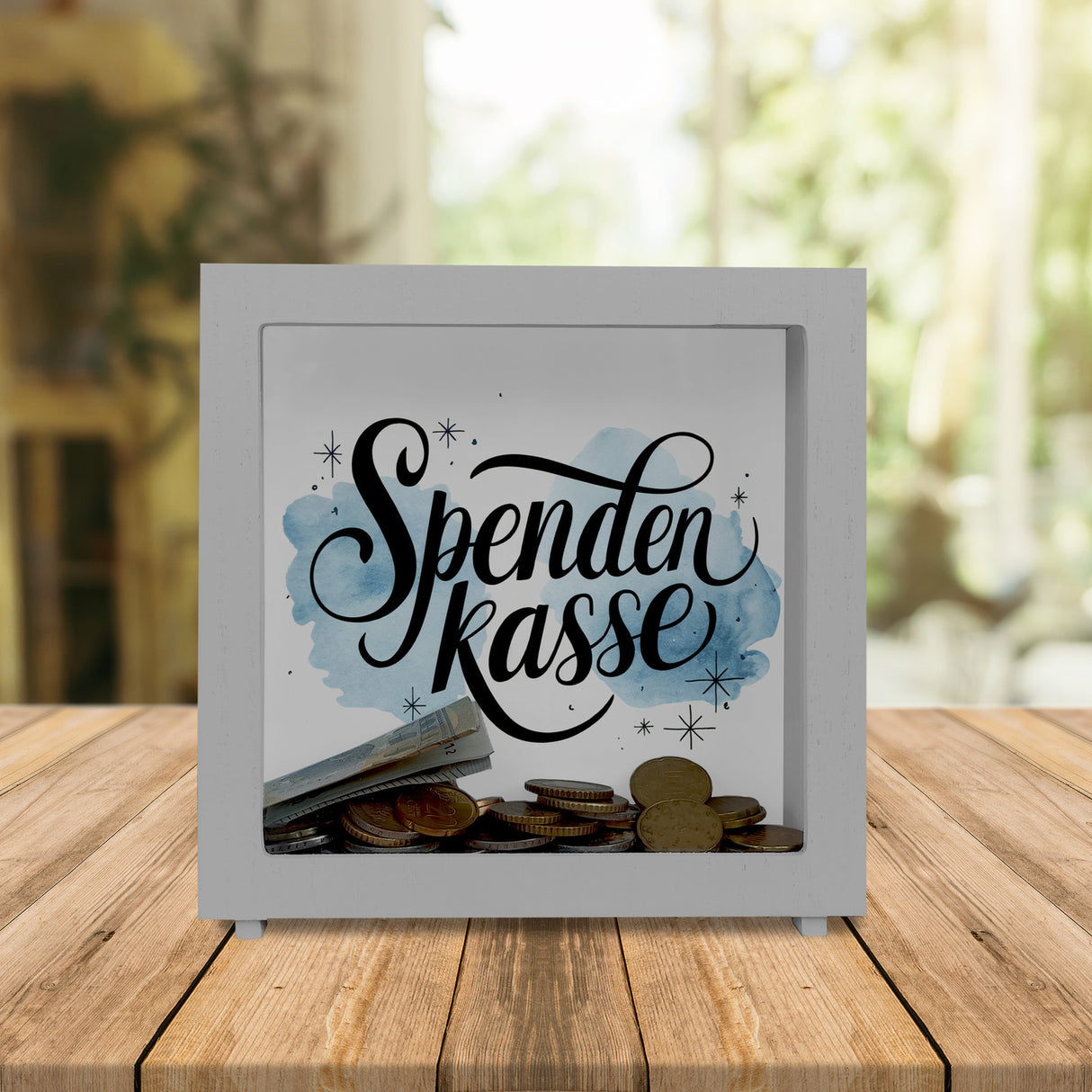 - 1x Spendenkasse Aquarell-Illustration Spardose in der gewählten Ausführung