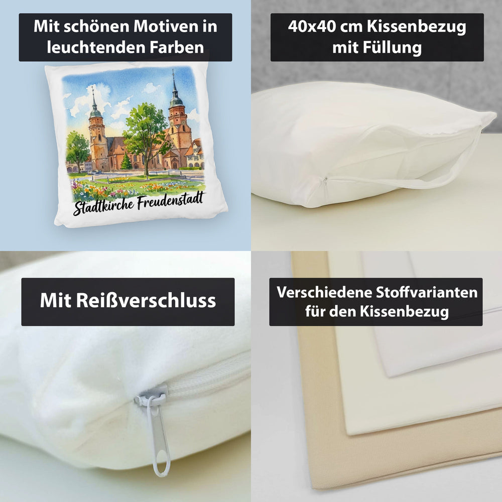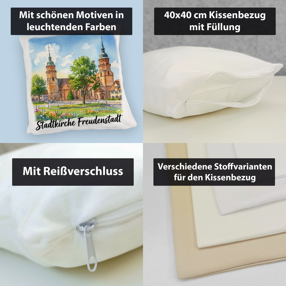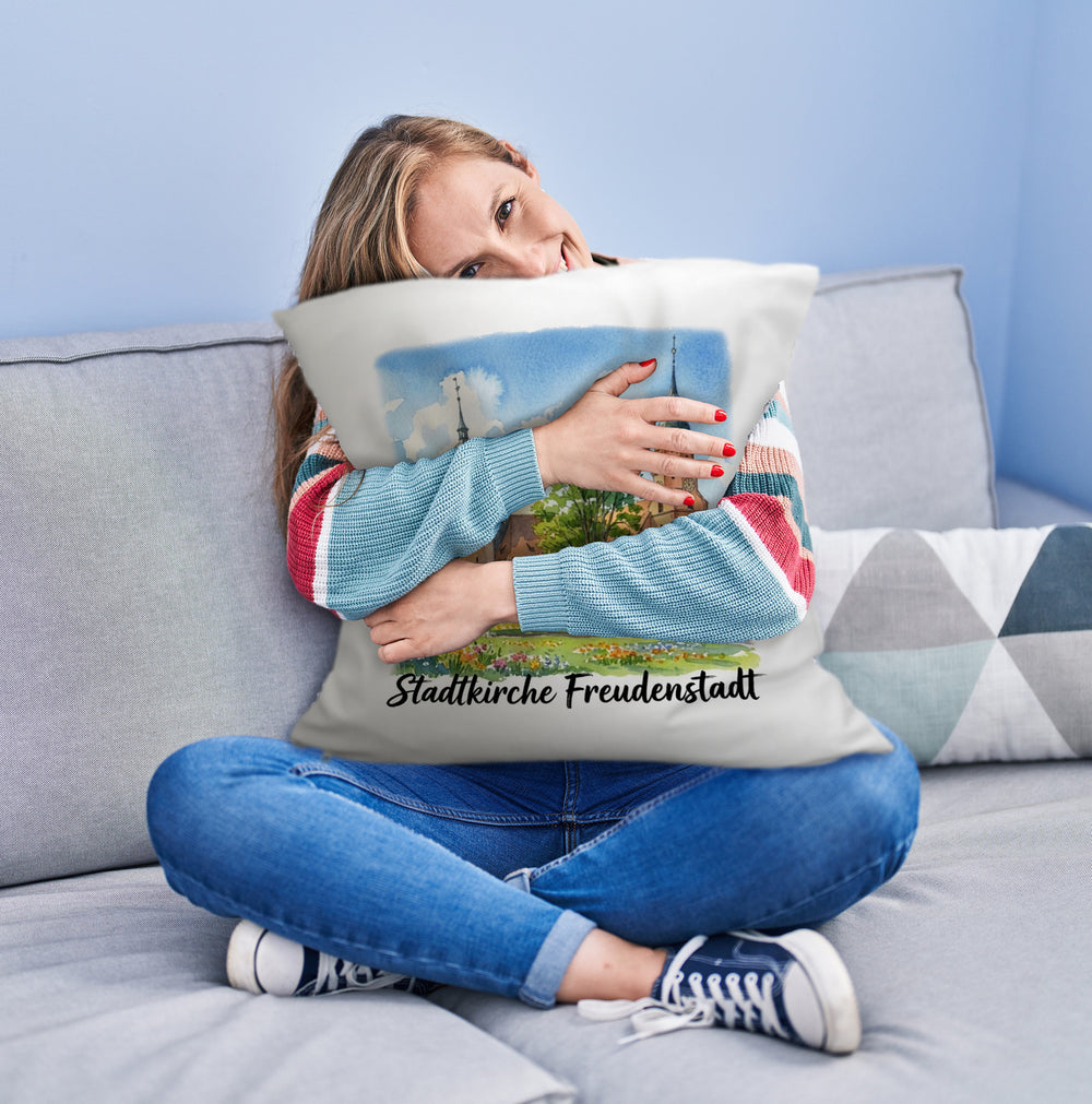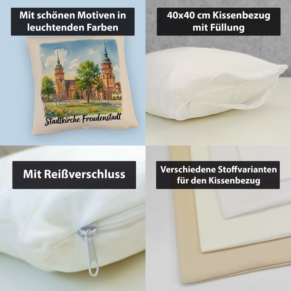 - 1x Stadtkirche Freudenstadt Kissen Aquarell in der gewählten Ausführung