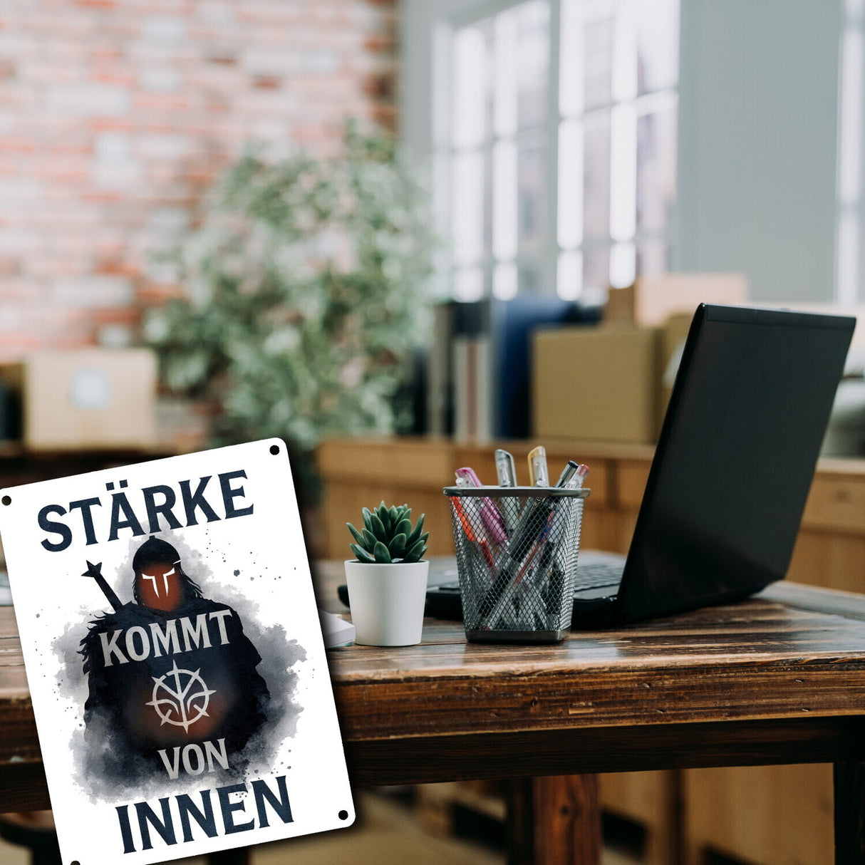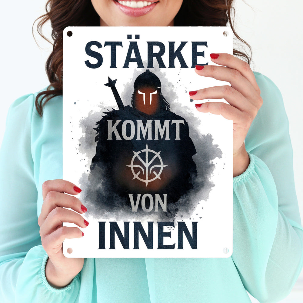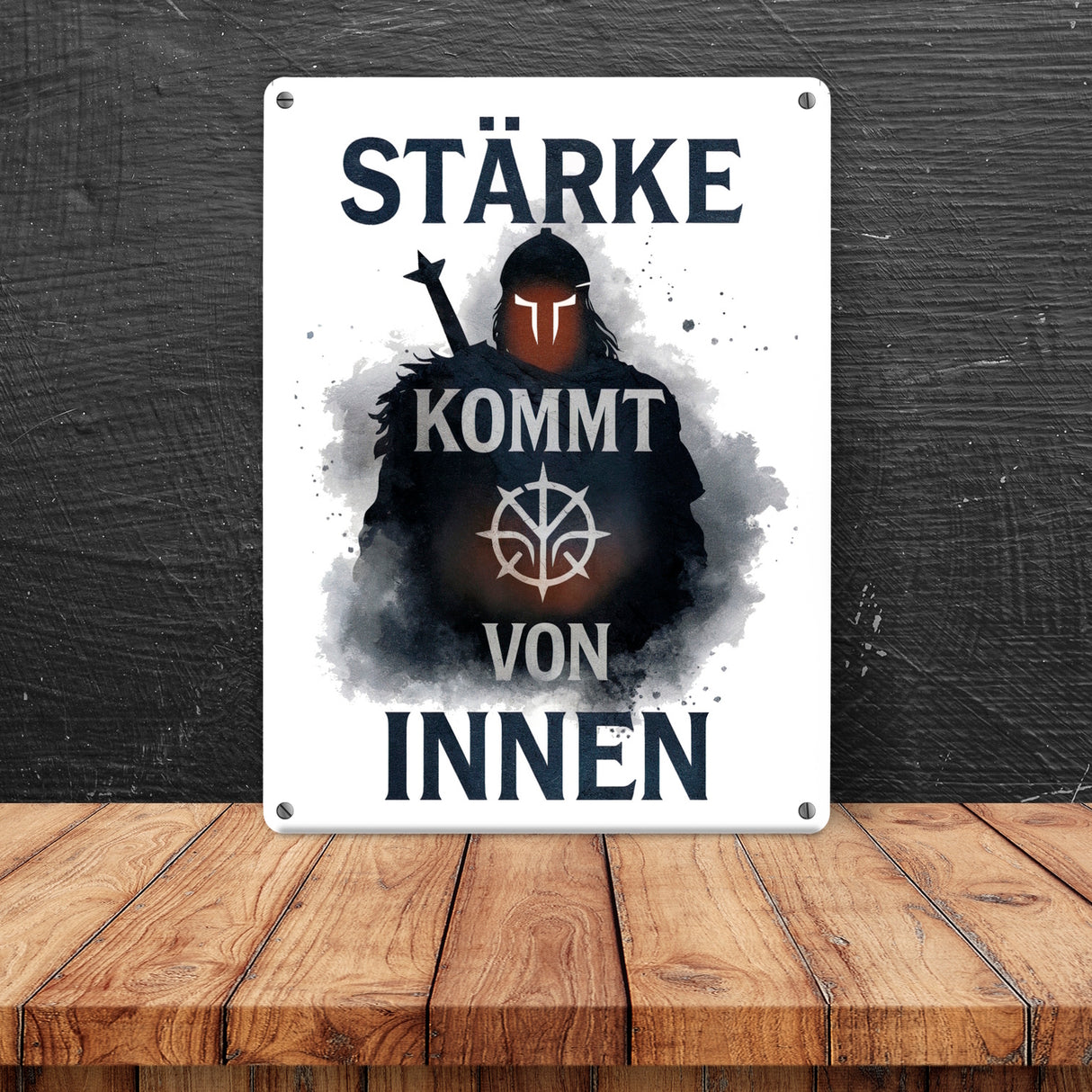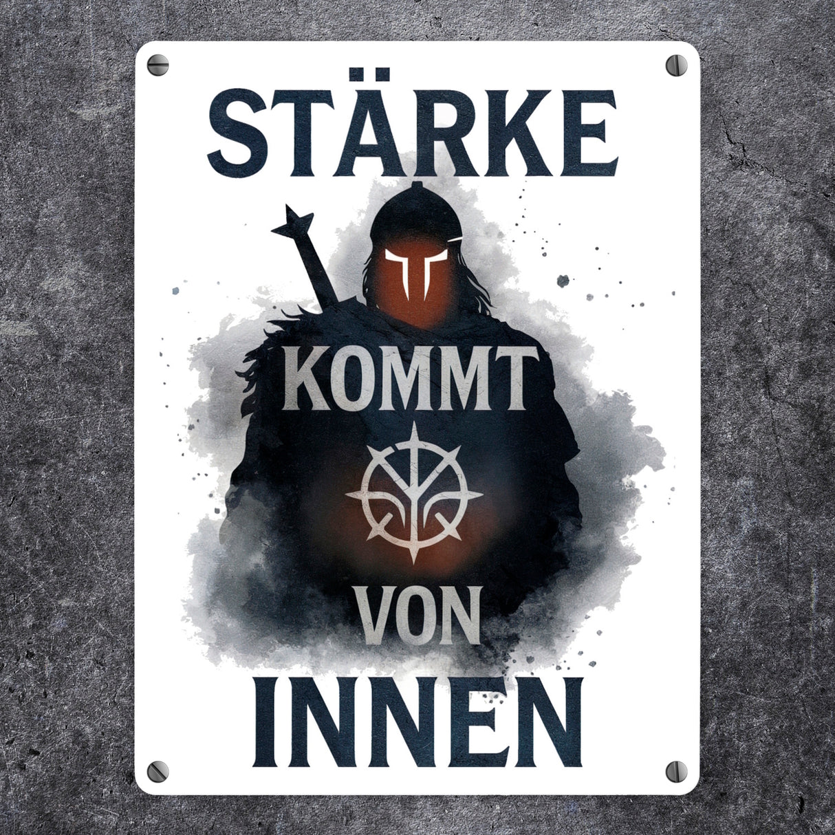 Starker Krieger - Stärke kommt von innen Metallschild in 15x20 cm