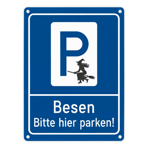 Hexebesen - Bitte hier parken Metallschild in 15x20 cm