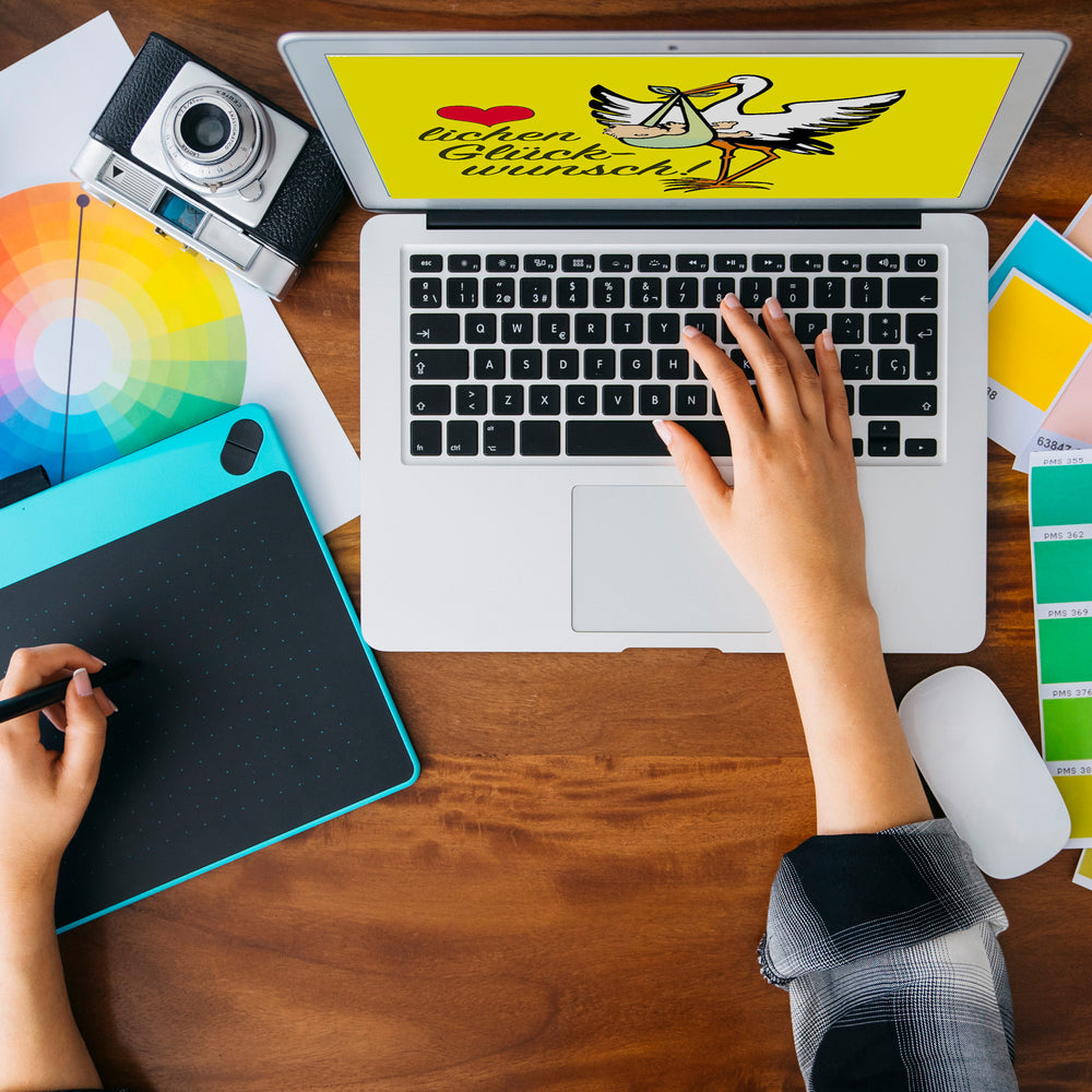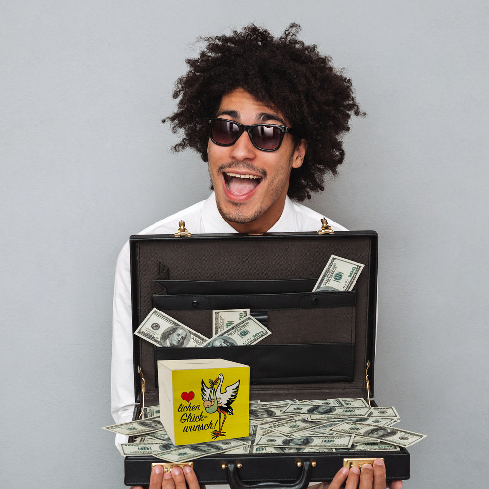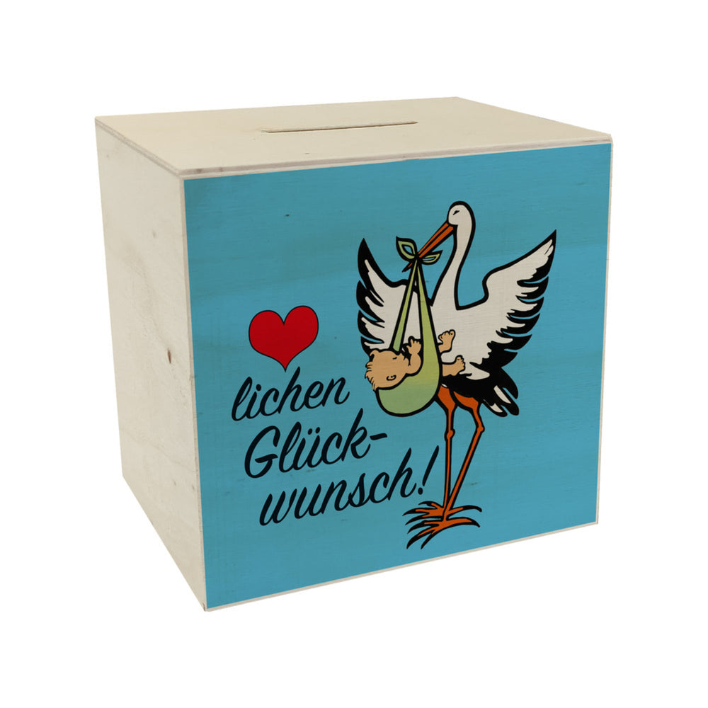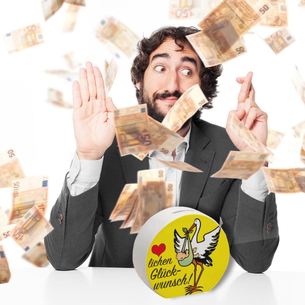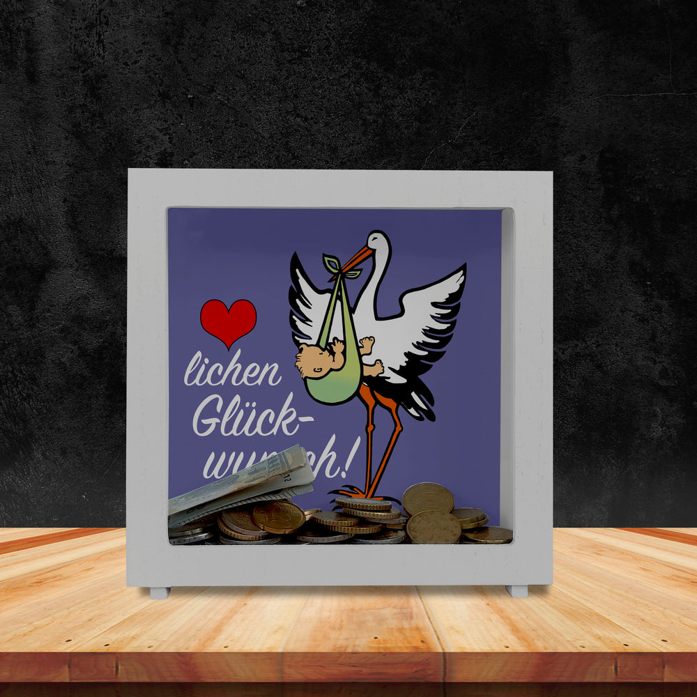 - 1x Storch und Kind Spardose zur Geburt mit niedlichem Motiv in der gewählten Ausführung