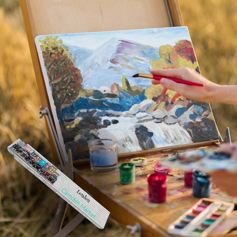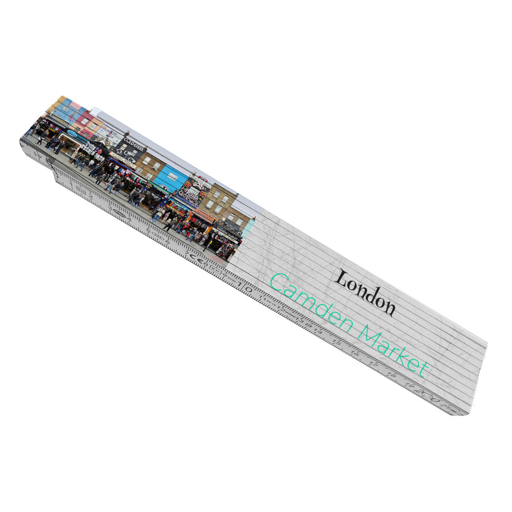 - Als Zollstock oder Messlatte bietet dieses Produkt mehr als nur Funktionalität. Es kombiniert die praktische Nutzung eines Messwerkzeugs mit einem visuell ansprechenden Motiv der Londoner Kulturszene. Ideal für alle, die ihrer Werkstatt, ihrem Atelier oder ihrem Büro stilvolle Akzente verleihen möchten, während sie die Erinnerungen an Londons Camden Market wachhalten.