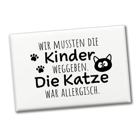 Katze Souvenir Magnet eckig mit Spruch Katze allergisch deshalb Kinder weg