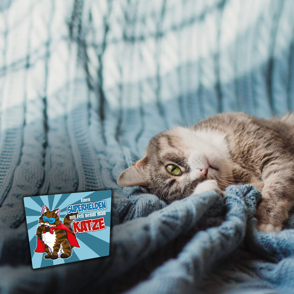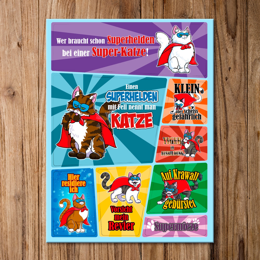- Katzen sind super. Was liegt da näher wie Katzen als Superhelden? Hier wird das süße Fellknäuel mit lustigen Sprüchen und Superhelden-Optik aufgepeppt.