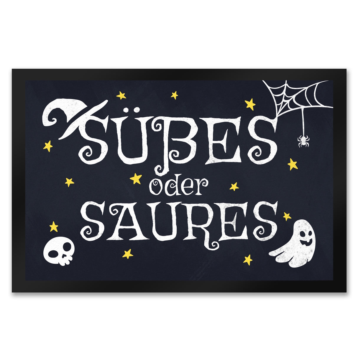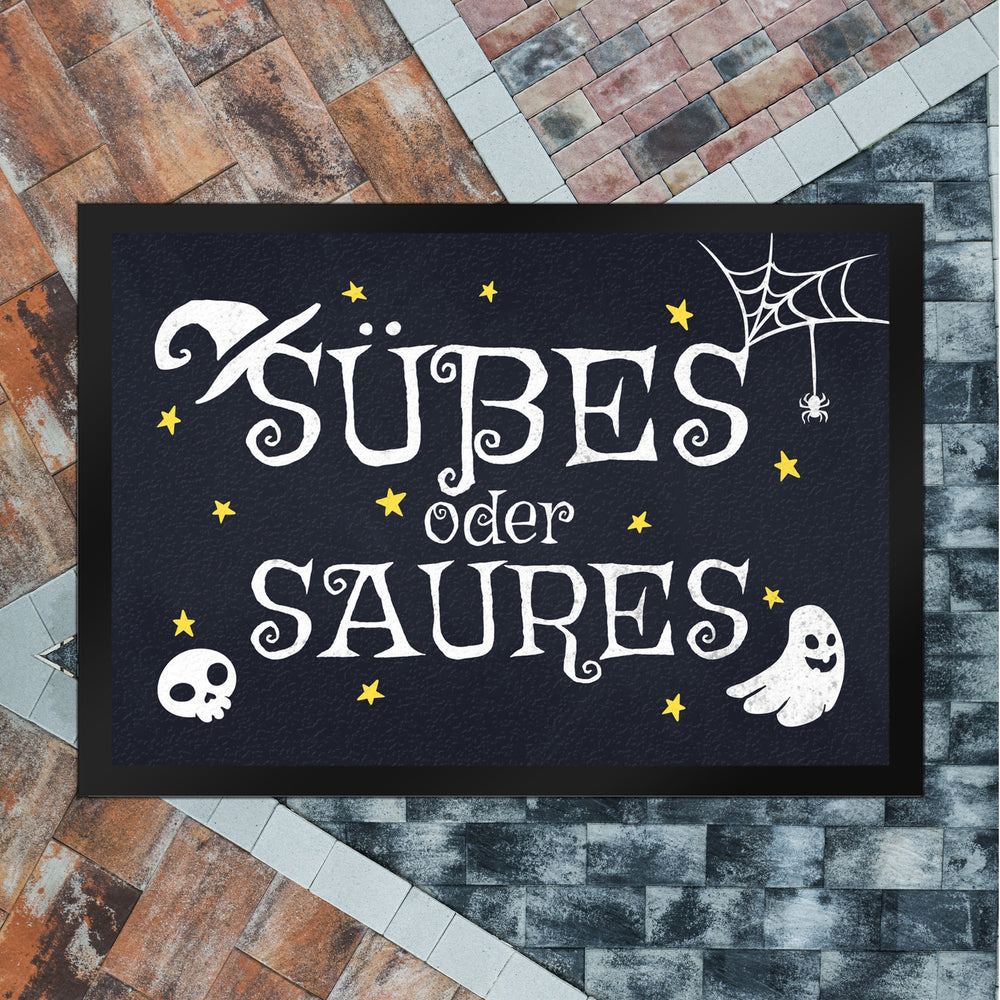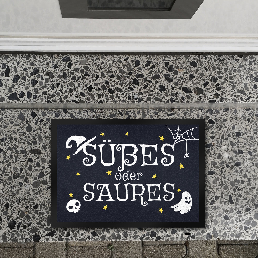 Süßes oder Saures Halloween Fußmatte mit vielen Halloweenmotiven