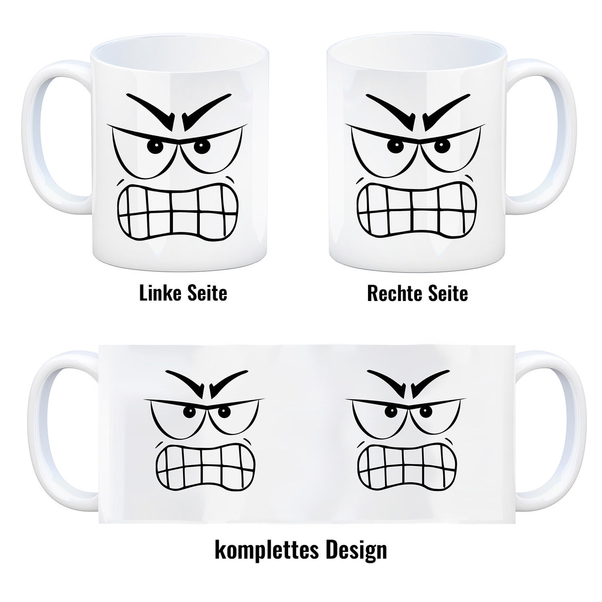 Tassengesichter Kaffeebecher mit aggressives Gesicht Motiv