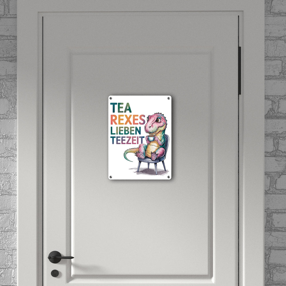 Tea rexes lieben Teezeit Metallschild in 15x20 cm