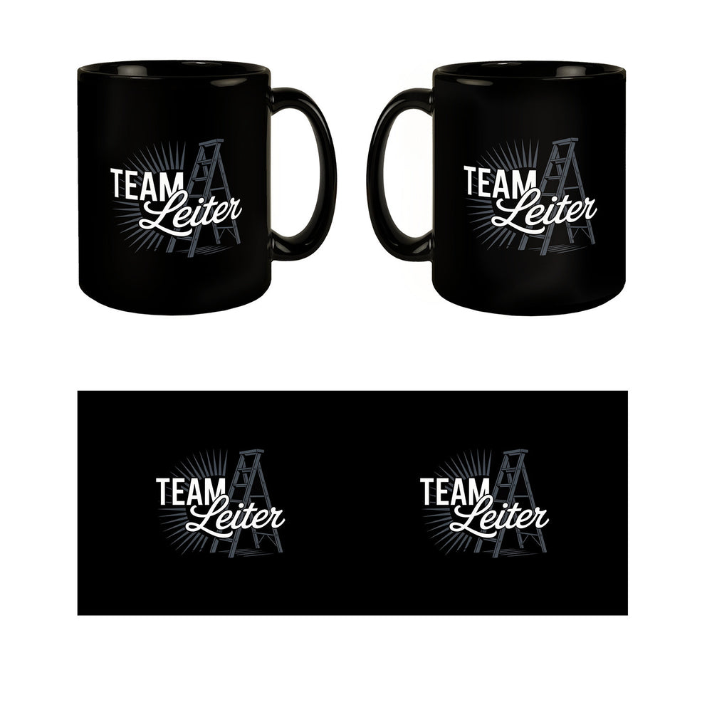 • Die Teamleiter Tasse mit Leiter ist ein echter Hingucker in Schwarz. Mit dem fetten, seriösen "TEAM" und dem eleganten "Leiter" zieht sie alle Blicke auf sich. Die stilisierte Holzleiter-Silhouette gibt dem Becher einen humorvollen Bürotwist. Ein professionelles Design für den Schreibtisch, das auffällt!