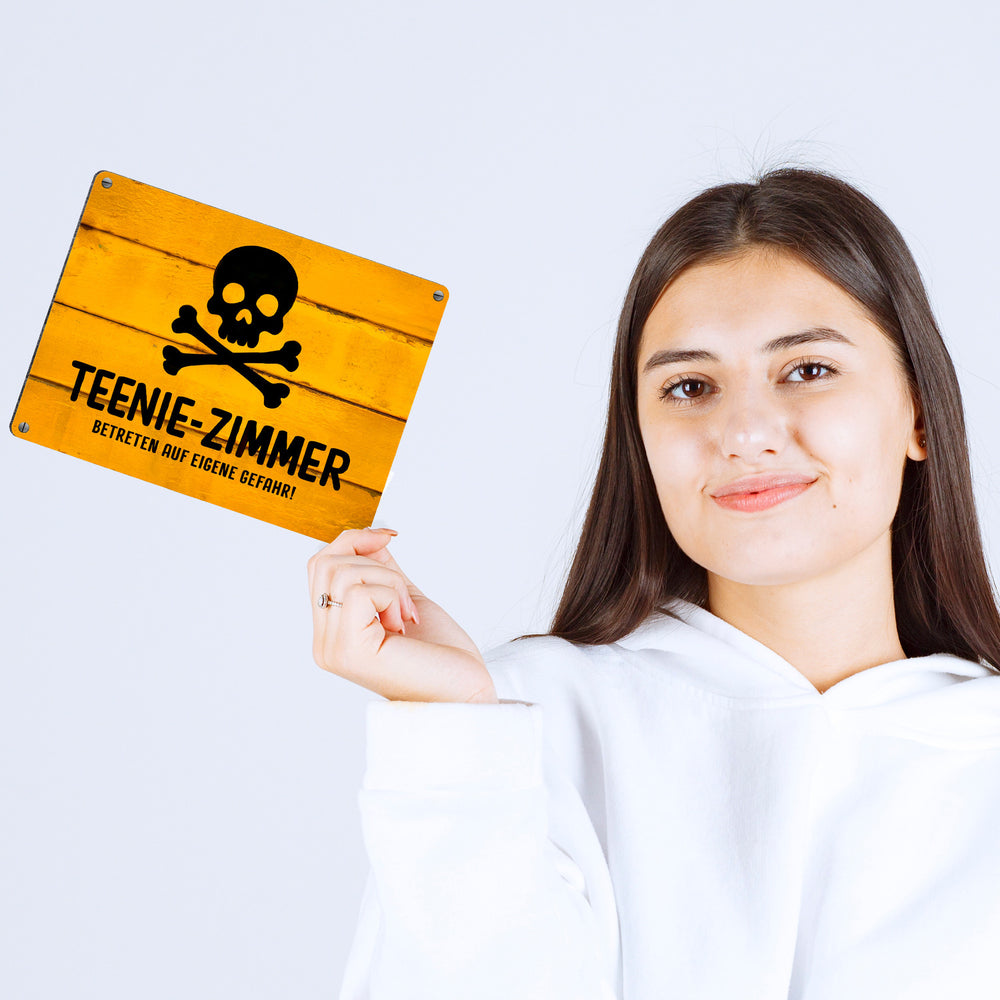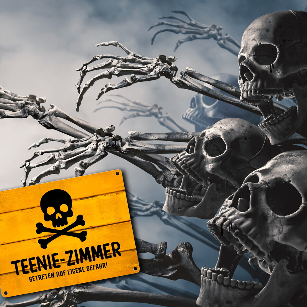 - 1x Teenie-Zimmer Totenkopf Metallschild in 15x20 cm in der gewählten Größe