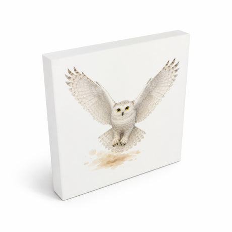 Schneeeulenzauber Schneeeule Flug Holzbild in 10x10 cm zum Stellen oder Aufhängen