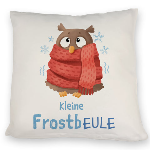 Kleine Frostbeule Kissen mit Spruch niedlicher Eule