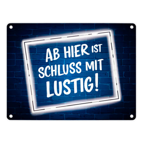 Ab hier ist Schluss mit Lustig! Metallschild in 15x20 cm