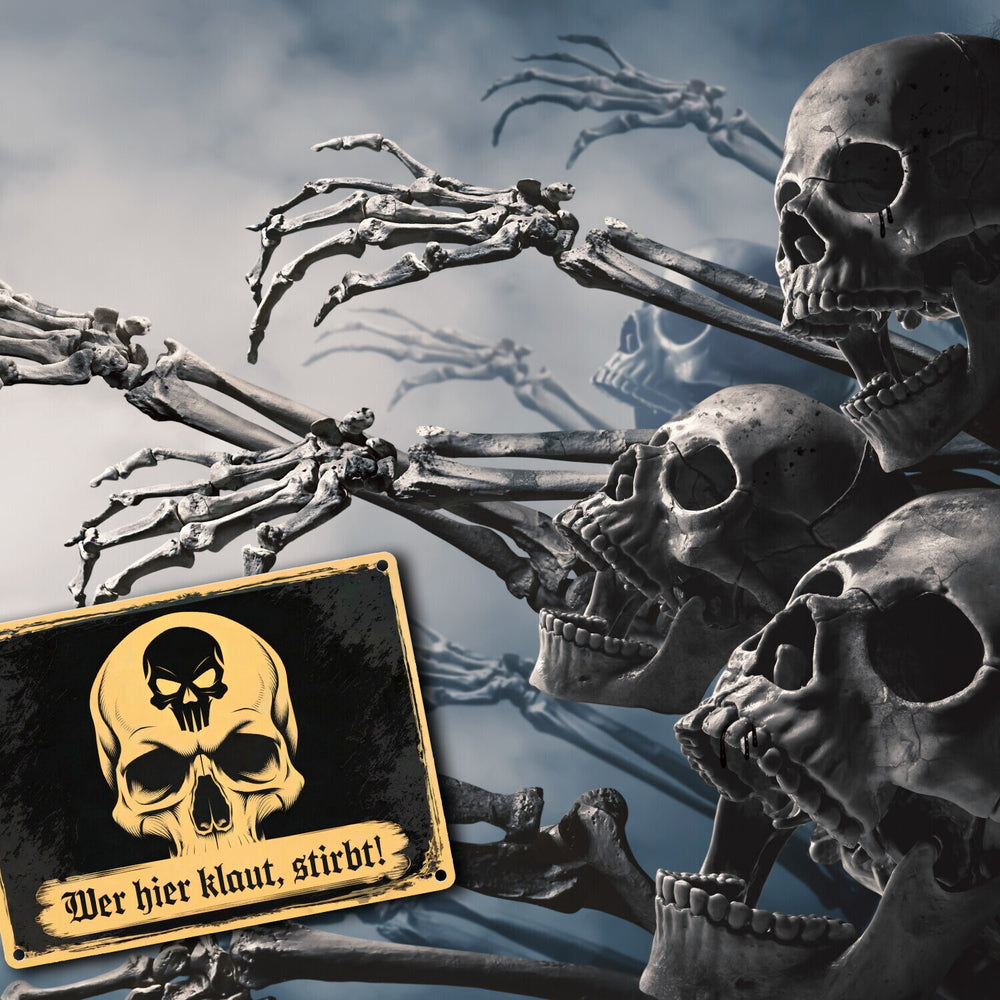 - 1x Totenkopf Warnung Wer hier klaut STIRBT Metallschild in 15x20 cm in der gewählten Größe
