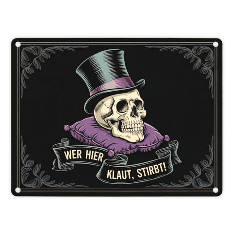 Totenkopf mit Zylinder - Wer hier klaut stirbt Metallschild in 15x20 cm