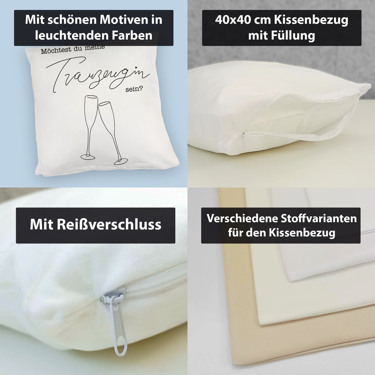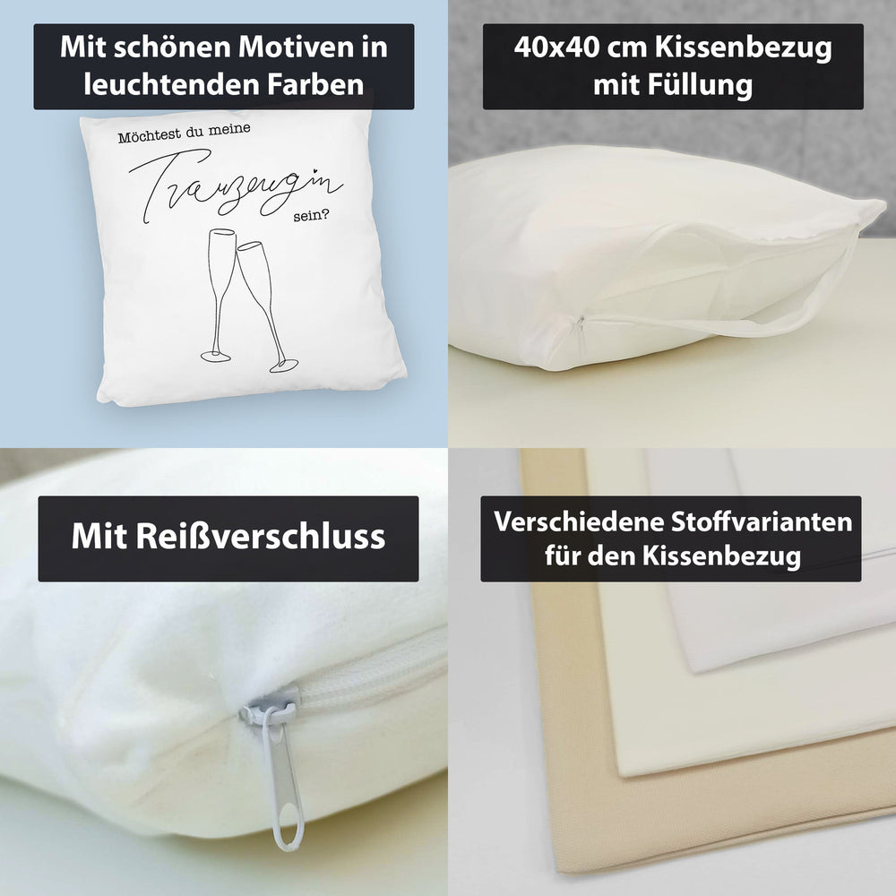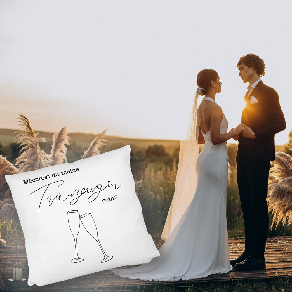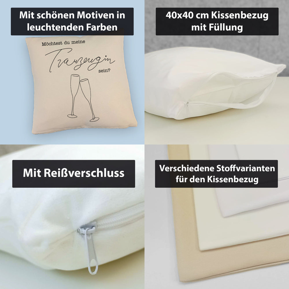 • 1x Trauzeugin Kissen mit Spruch Möchtest du meine Trauzeugin sein in der gewählten Ausführung