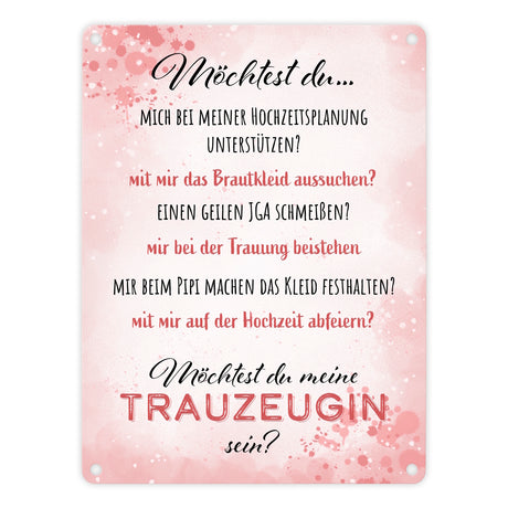 Möchtest du meine Trauzeugin sein? Metallschild in 15x20 cm