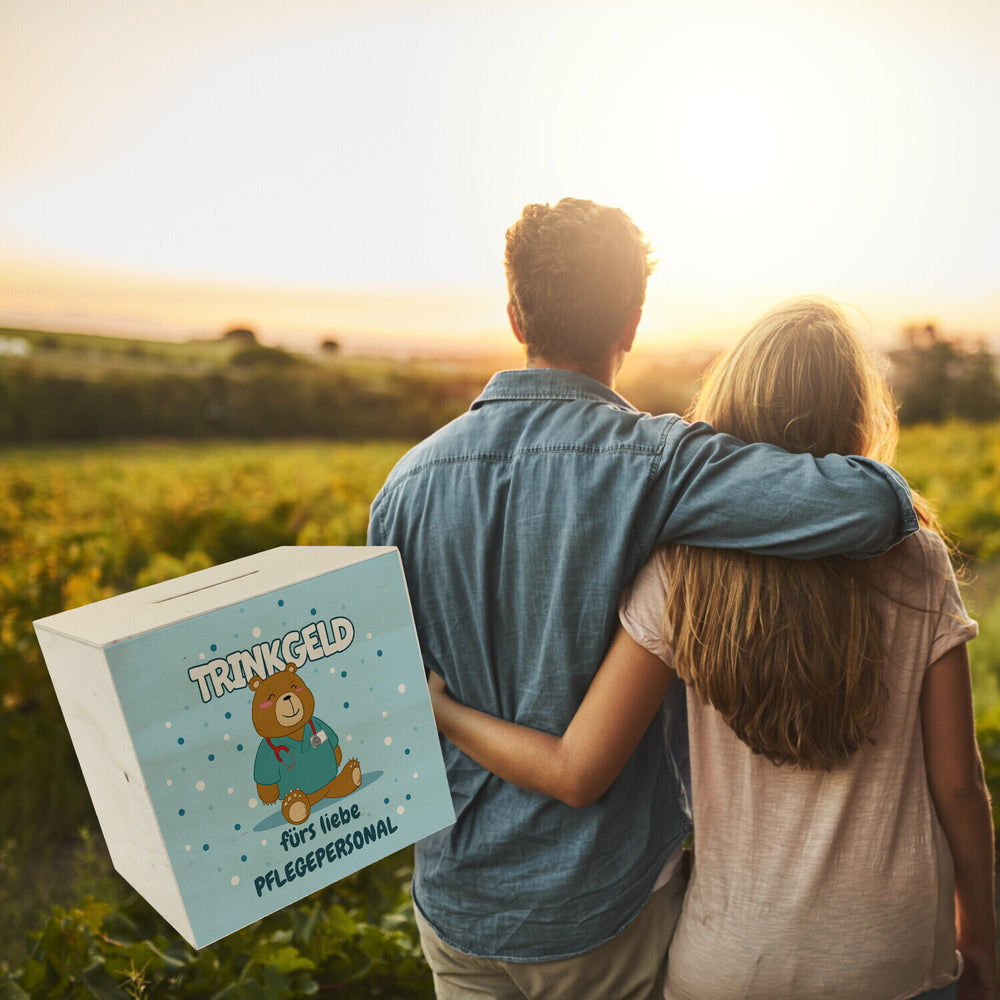 • Du kennst tolles Pflegepersonal, die gerne und gut ihren Beruf ausüben und ein Dankeschön verdient hätten. Schenke ihnen diese schöne Trinkgeldkasse, um ihnen einen kleinen Obolus.