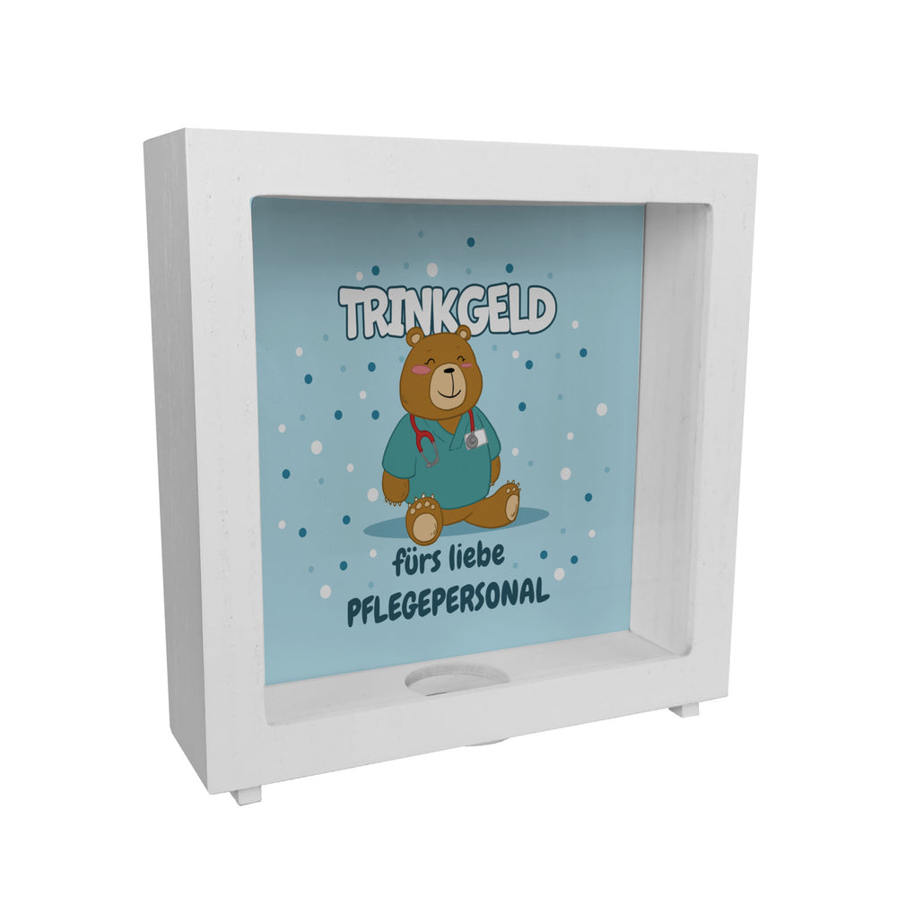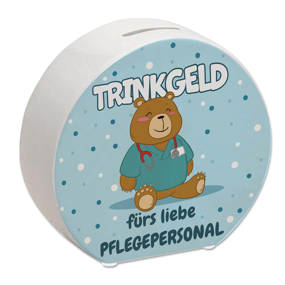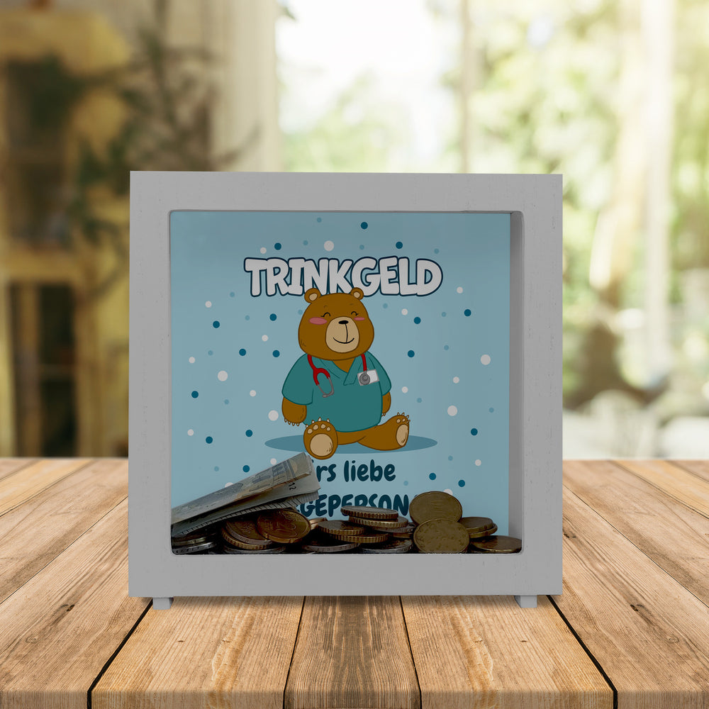 • 1x Trinkgeld fürs liebe Pflegepersonal Spardose mit süßem Bären-Motiv in der gewählten Ausführung