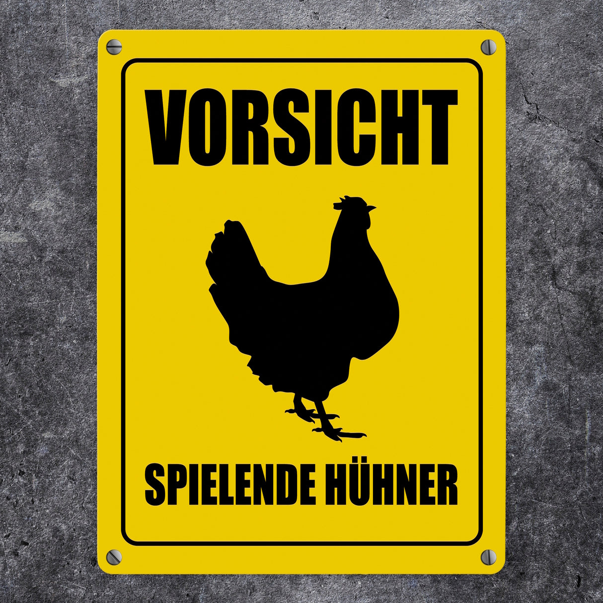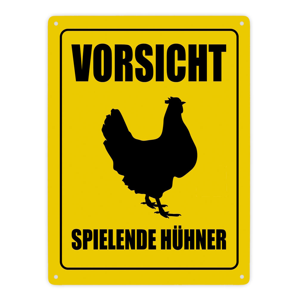 - Lieferumfang: 1x Vorsicht spielende Hühner Metallschild mit Huhn Motiv